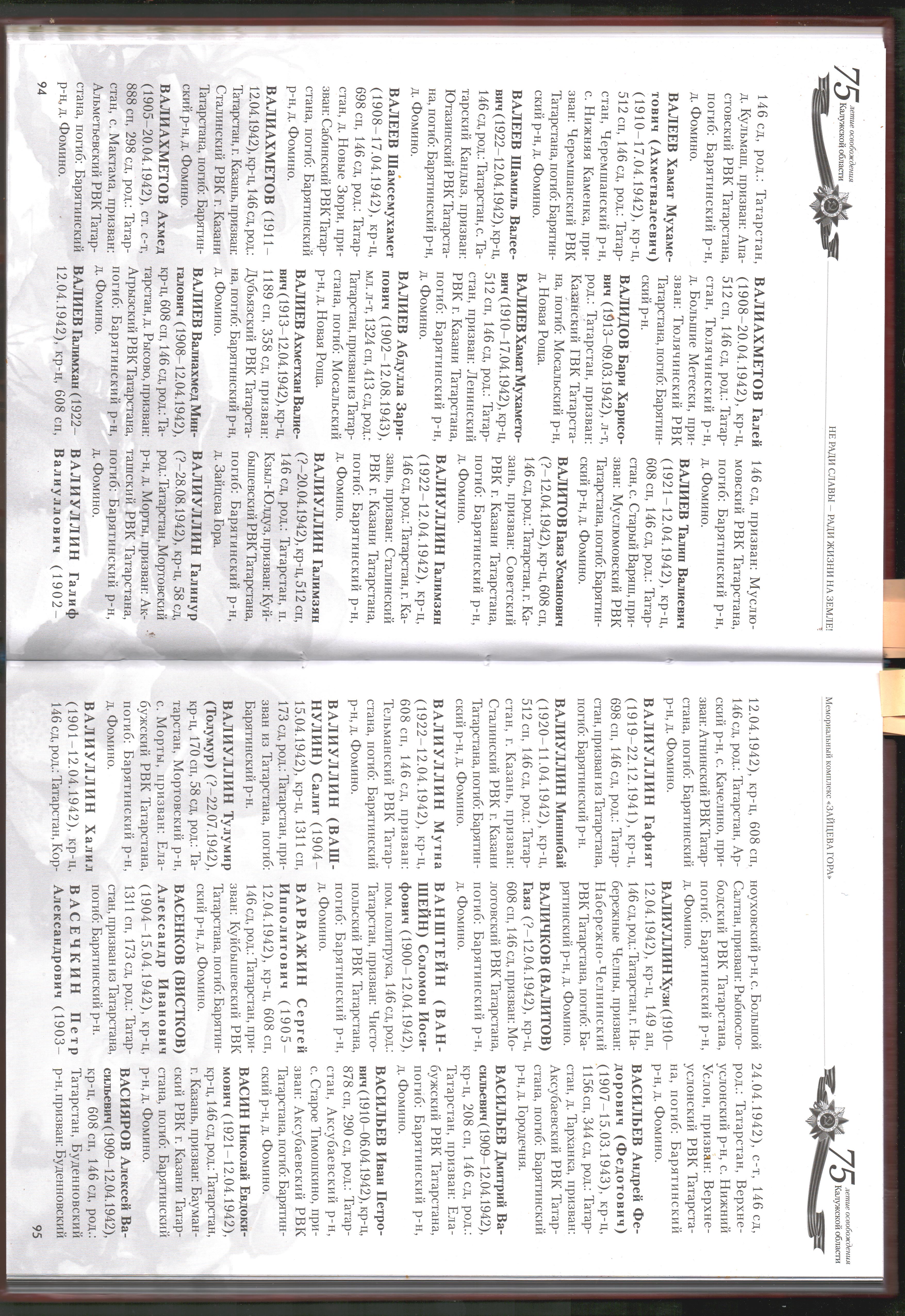 В продолжение рубрики "Вернувшиеся имена героев" представляем списки погибших солдат в годы Великой Отечественной войны, захороненных в д. Зайцева гора Барятинского района Калужской области, среди которых есть наши земляки. Возможно, кто-то найдёт имена своих близких.