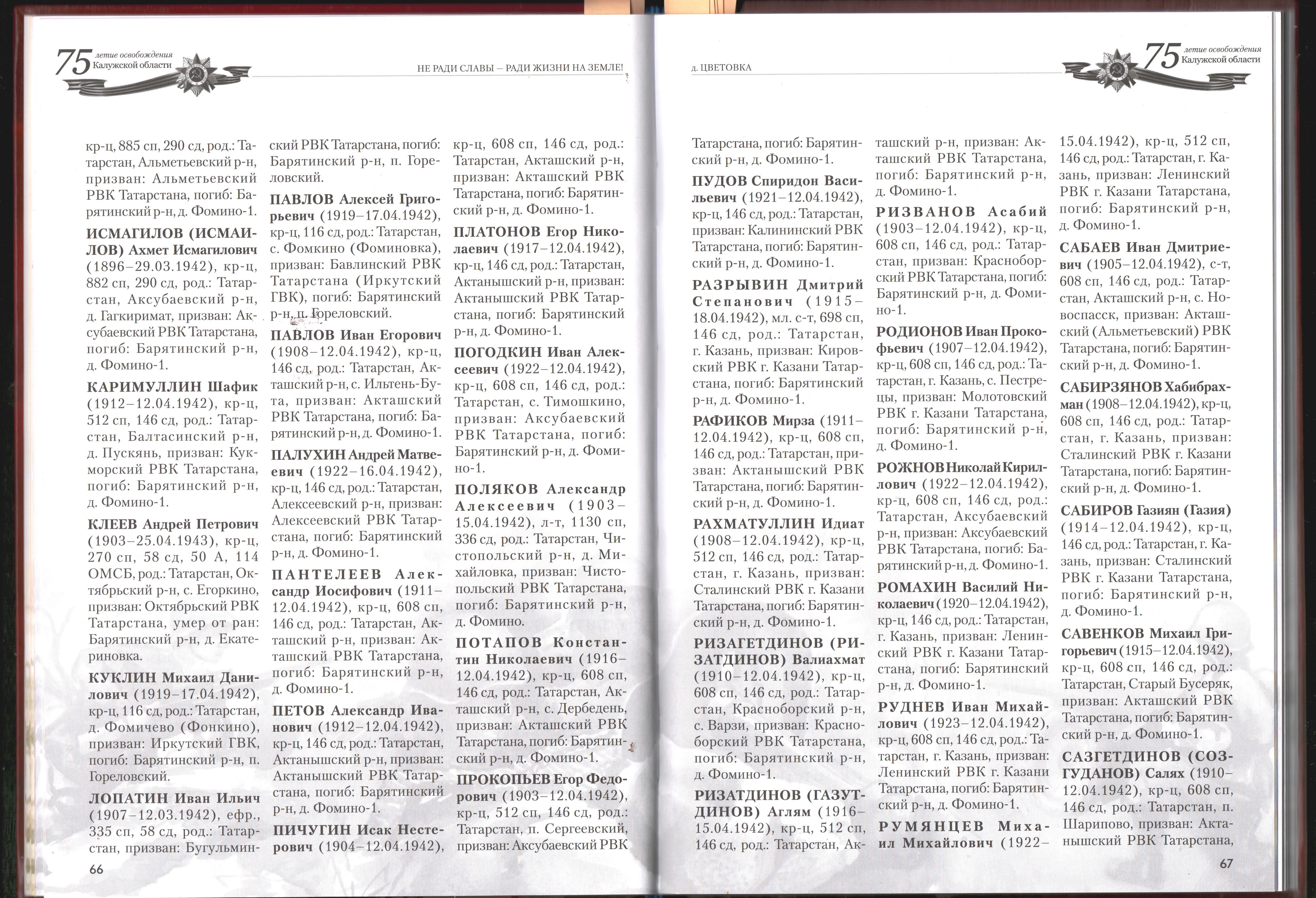 В продолжение рубрики "Вернувшиеся имена героев" представляем списки погибших солдат в годы Великой Отечественной войны, захороненных в д. Чумазово и д. Цветовка Барятинского района Калужской области, среди которых есть наши земляки. Возможно, кто-то найдёт имена своих близких.