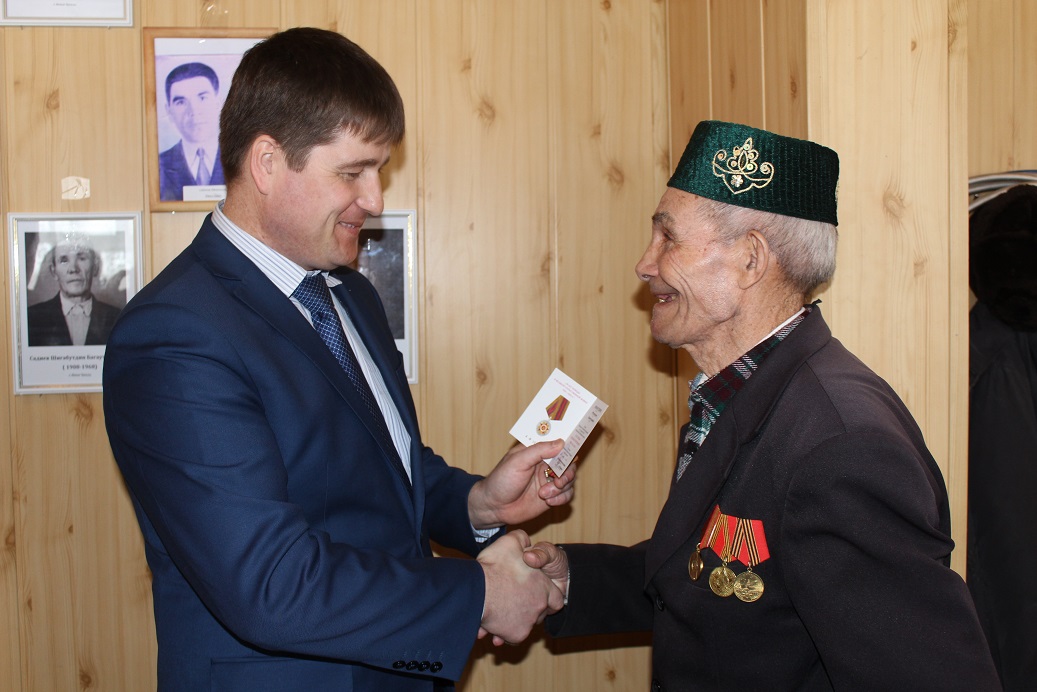 Юбилейные медали вручили в торжественной обстановке как в школах так и на дому. Заместитель главы района Алексей Сарафанов и глава сельского поселения Наил Шихранов побывали дома у вдов ветеранов ВОВ Марии Васияровой, Василисы Ермолаевой, тружеников тыла Зинаиды Утеевой и Муниры Измайловой.