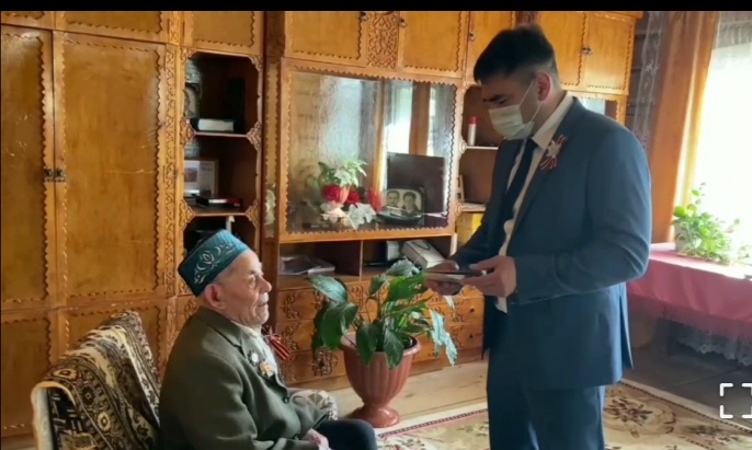 Бүген район башлыгы Сергей Дмитриев Зур Сәрдек авылында яшәүче сугыш ветераны Әхәт Вәлиевның хәлләрен белеп, якынлашып килүче бәйрәм уңаеннан Татарстан Президенты Рөстәм Миңнехановның һәм үзенең котлау открыткасын, истәлек бүләге тапшырды.