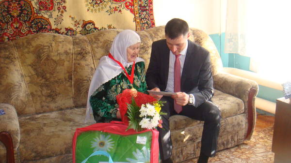 Сегодня 15.03.2017 в д. Новый Мусабай поздравили с 90-летием ветерана тыла и труда Вахитову Махтуму Сулеймановну. Заместитель главы района Рустам Закиров вручил ей персональное поздравление от имени Президента РФ Владимира Путина и подарок главы района Василя Хазеева .Юбиляра также поздравили председатель Совета ветеранов районаЗарипов Галимзян Саетзянович, глава сельского поселения Сайфетдинов Наис Миргасимович.