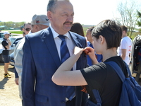 Традиционный пробег стартовал из с.Измя до п.г.т. Б. Сабы. Протяженность трассы составила 11 км. До начала пробега волонтеры всем участникам и болельщикам раздали и прикрепили к одежде более 100 Георгиевских ленточек – условный символ военной славы. На протяжении всего пробега волонтеры подбадривали участников, обеспечивая их питьевой водой на всей дистанции пробега. Уже на финишной прямой всех участников и болельщиков волонтеры угостили горячим чаем и конфетами.