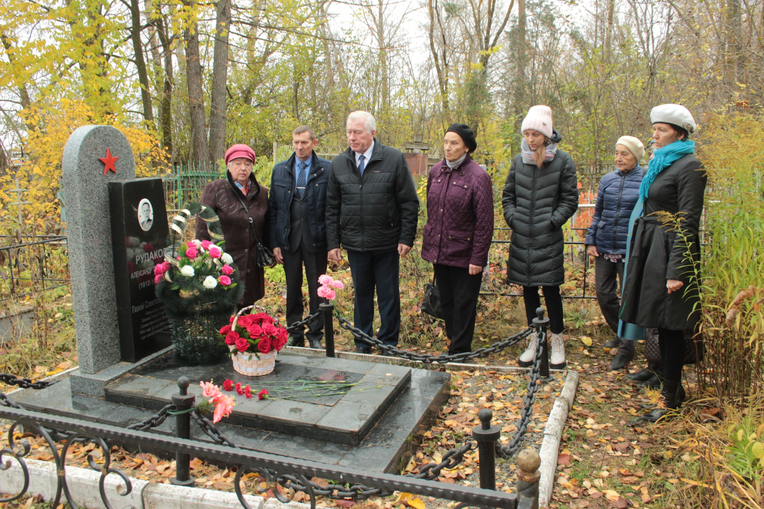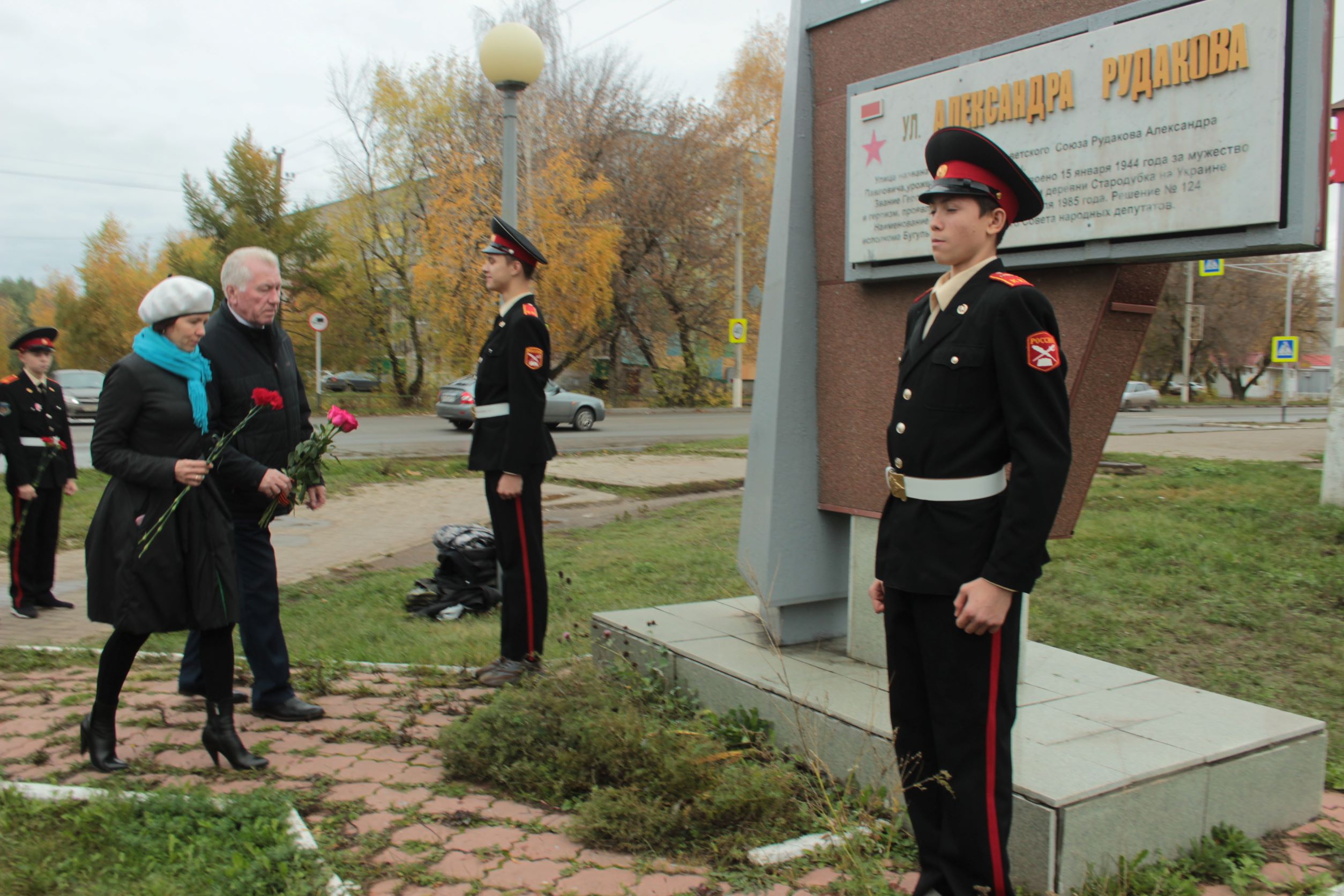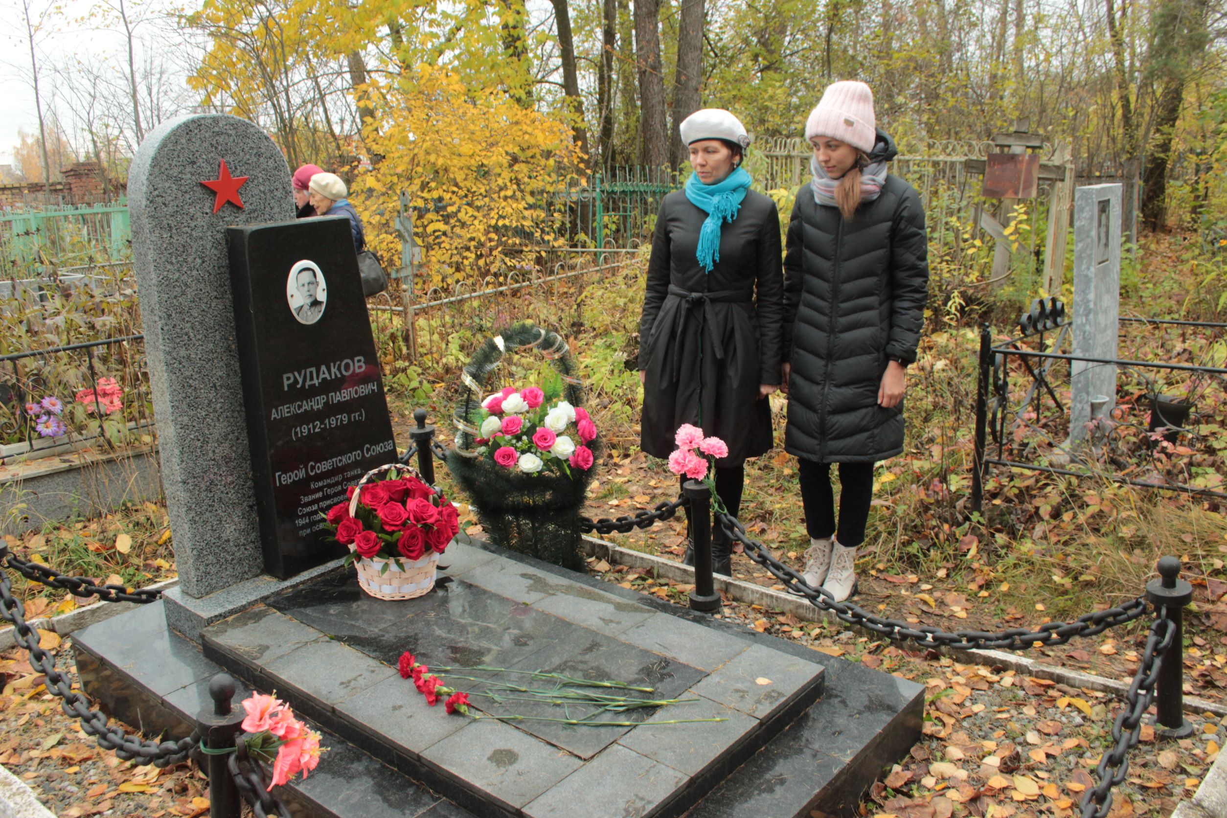 Участники встречи возложили цветы к стелле на улице, носящей имя Рудакова Александра Павловича и могиле героя.