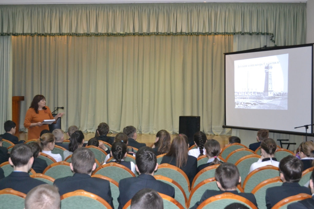 На выездном музейном уроке приняли участие 130 учащихся и классные руководители 6,7,8 классов. Для них была показана презентация «И помнить страшно, и забыть нельзя» о концлагерях и об узнице Маренковой Елене Николаевне, проживающей в пгт Тенишево Камско-Устьинского МР.