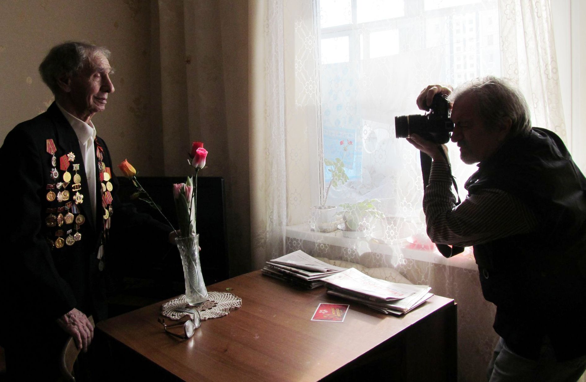 Напомним, Фарит Губаев приезжал в Елабугу 11 марта. В объектив его фотокамеры попали 3 ветерана: это Лидия Гобунова, Николай Фирстов и Александр Долонин.