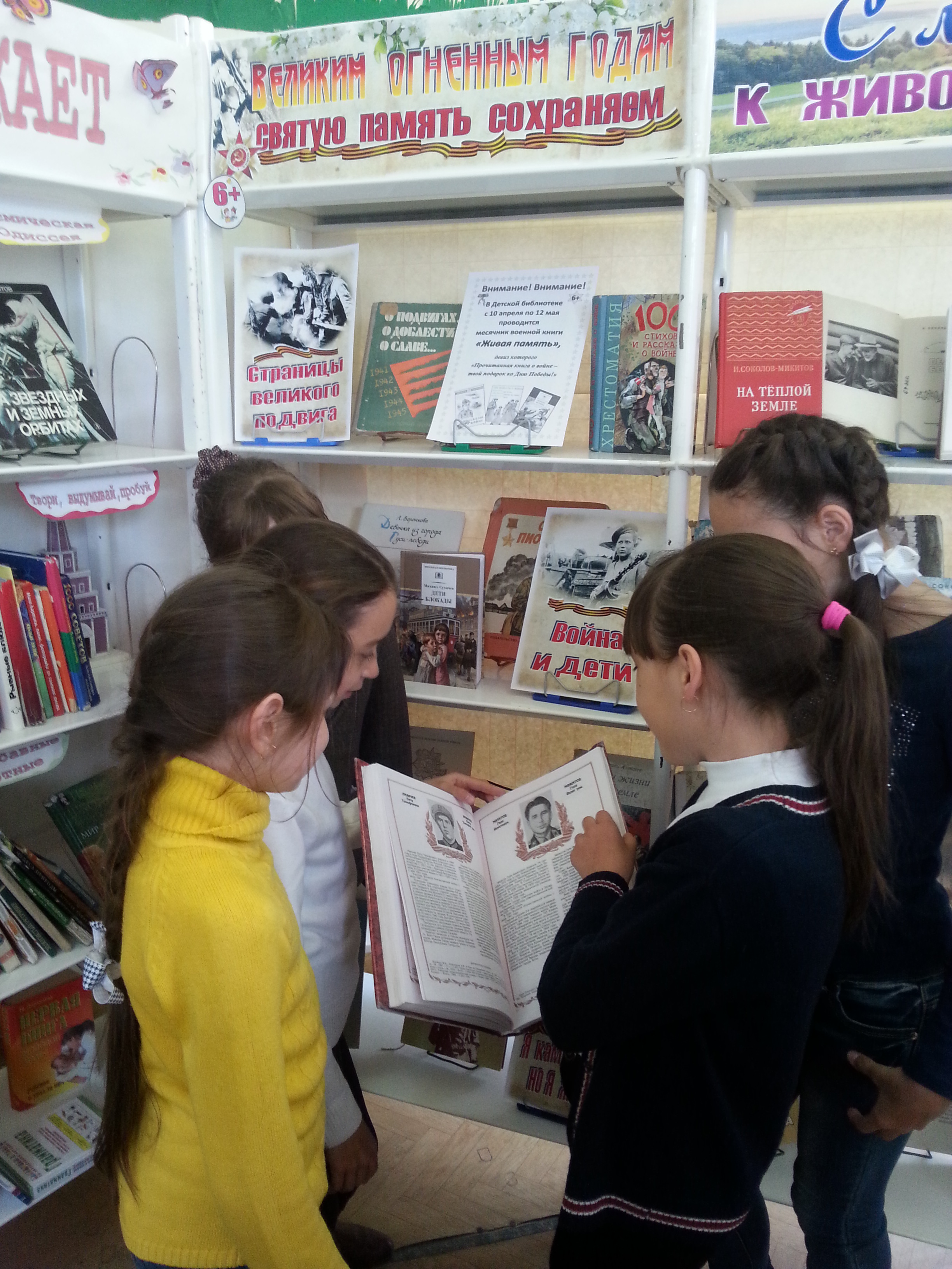 В Детской библиотеке в течение месячника военной книги «Живая память» вниманию читателей была представлена выставка «Великим огненным годам святую память сохраняем», посвящённая 72-ой годовщине Великой Победы. Литература с выставки напомнила о важности и значимости этого праздника для всех людей. Воспоминания об огненных вёрстах Великой Отечественной войны волнует людей и через много лет после окончания войны.