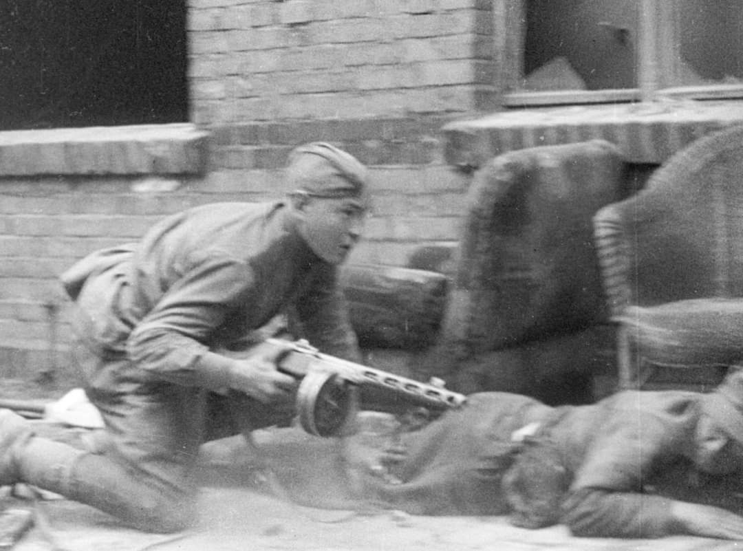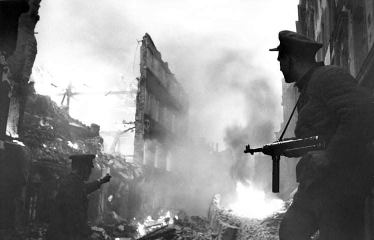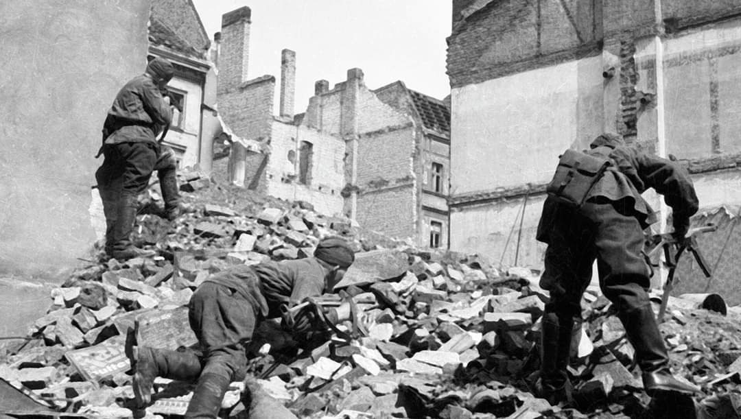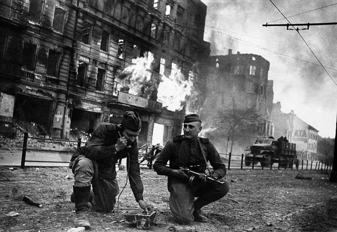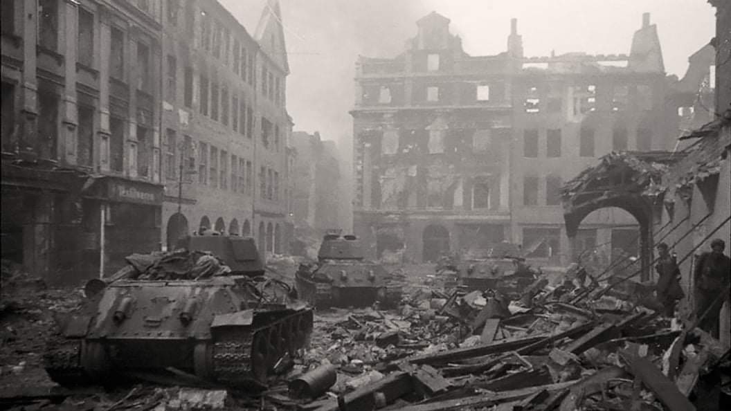 Войска 1-го БЕЛОРУССКОГО фронта под командованием Маршала Советского Союза ЖУКОВА, при содействии войск 1-го УКРАИНСКОГО фронта под командованием Маршала Советского Союза КОНЕВА, после упорных уличных боёв завершили разгром Берлинской группы немецких войск и сегодня, 2 мая, полностью овладели столицей Германии городом БЕРЛИН - центром немецкого империализма и очагом немецкой агрессии.