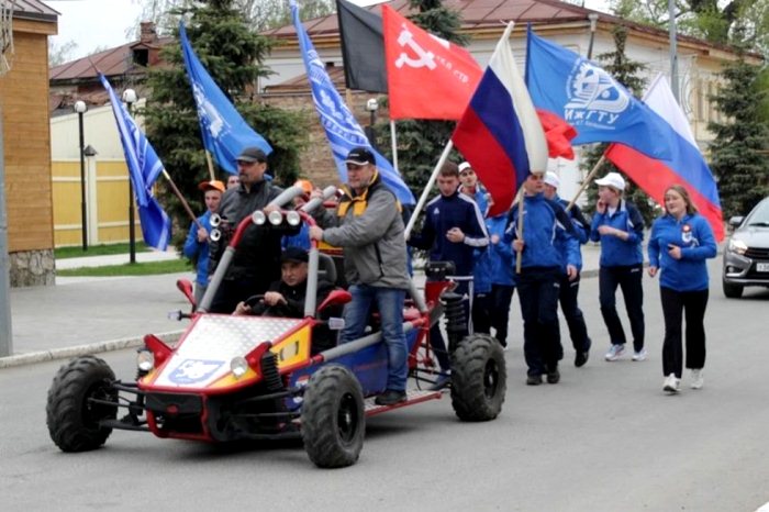 На сегодняшний день в составе участников XIII международного студенческого пробега, посвященного 71-й годовщине Победы в Великой Отечественной войне, шесть вузов - ИжГТУ имени М. Т. Калашникова, Нижегородский государственный технический университет имени Р. Е. Алексеева, Казанский (Приволжский) федеральный университет, Елабужский институт Казанского (Приволжского) федерального университета, Чебоксарский государственный педагогический университет имени И. Я. Яковлева, Белорусский национальный технический университет. «Для меня честь участвовать в подобной акции. Этот пробег организован, чтобы молодые люди помнили о своей истории, чтили подвиги своих родных и близких, и ценили то, что они нам подарили – мирное небо над головой! Я горд тем, что могу выступать с такой миссией», - делится впечатлениями студент ИжГТУ имени М. Т. Калашникова Кирилл Филиппов.