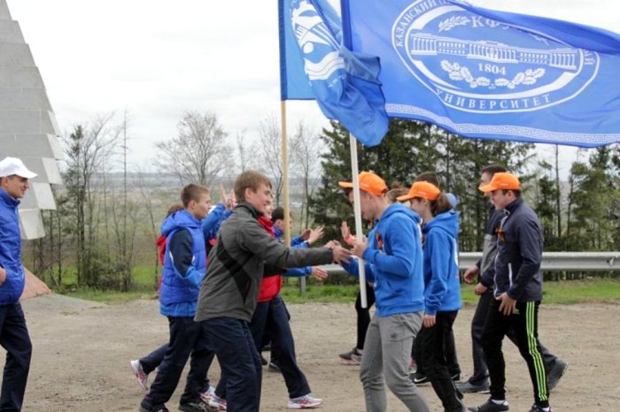 3 мая на Университетской площади Елабужского института КФУ состоялась торжественная встреча делегации XIII международного студенческого пробега, посвященного 71-й годовщине Победы в Великой Отечественной войне. Участников пробега из Ижевска студенты Елабужского института КФУ по традиции встречали у границы Удмуртии и после обмена символическими подарками и словами приветствия участники пробега направились в сторону Елабуги.