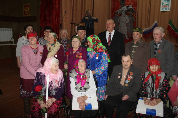 В Новотроицком доме культуры состоялось торжественное вручение юбилейных медалей и памятных подарков ветеранам войны и тыла. Вручил медали и памятные подарки  глава муниципального района Василь Гарипович Хазеев .