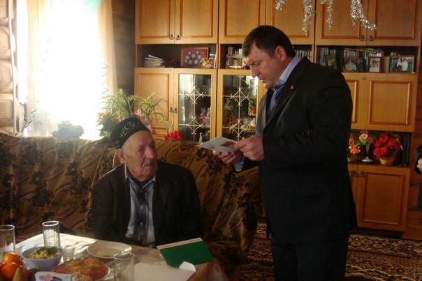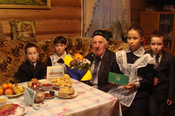 Исполнилось 90 лет жителю Кудашева - ветерану тыла и труда, Заслуженному колхознику Мухамматдину Салахиеву. Юбиляра поздравил глава Агрызского района Валерий Макаров. Ветерана поздравили и самые юные жители села - учащиеся Кудашевской начальной школы-сад.