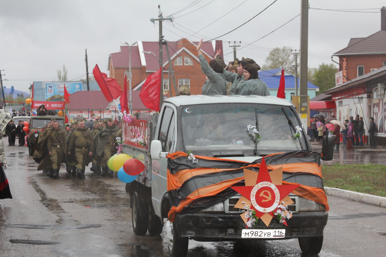 До начала торжества секретарь политсовета местного отделения партии «Единая Россия», глава района Рустем Нуриев, директор «Инвестиционно-венчурного фонда РТ» Айнур Айдельдинов и другие гости района вручили ветеранам войны 12 ключей от квартир в новом многоквартирном доме, возведенном по ветеранской программе. В Параде победы мимо Мемориального комплекса прошел «Бессмертный полк», в котором участвовали внуки и правнуки тех, кто ушел защищать Родину из нашего района. Следом за ними прошествовали колонны мотострелков, пехотинцев, морфлотовцев, пограничников, санитаров, полевая кухня. Ветеранов войны, их вдов, тружеников тыла, детей войны и всех остальных участников праздника поздравили руководство района, гости праздника. Память погибших на войне земляков участники митинга почтили минутой молчания. Каждое предприятие, учреждение, организация возложили к Вечному огню венки и корзины с цветами. В небо взмыли белые голуби, прозвучал торжественный троекратный оружейный залп.