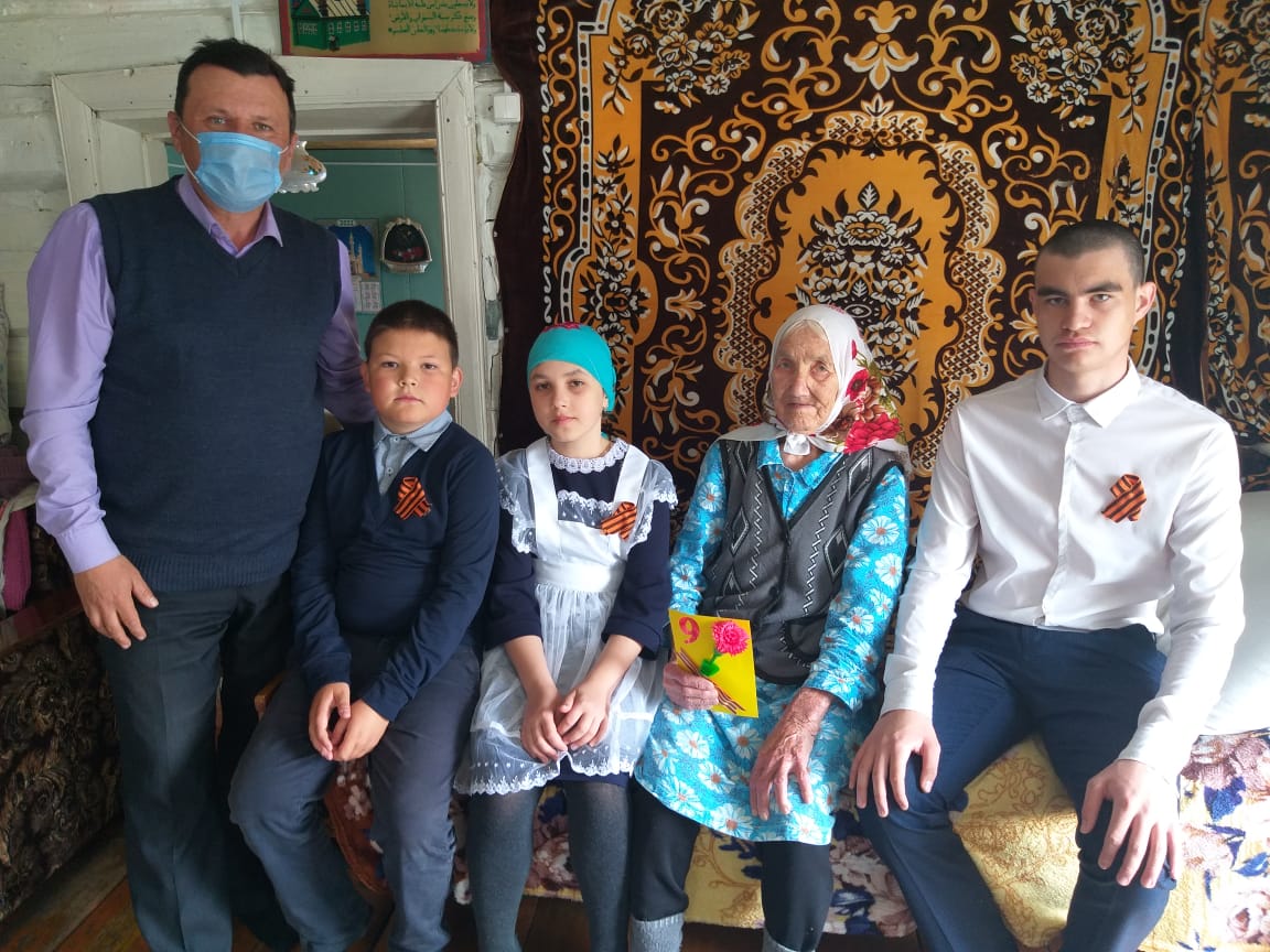 Я как сотрудник «Музея Наследия поколений» с учителями и учениками Акбуринской ООШ и работниками центра «Забота» посетил и поздравил своих односельчан с Великой Победой, а ученики исполнили стихотворения.
