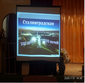 02 февраля 2025 года в клубе провели час памяти, посвященный 82 годовщине разгрома Советскими войсками немецко-фашистских войск Сталинградской битвы «Здесь Родиной каждому был Сталинград».