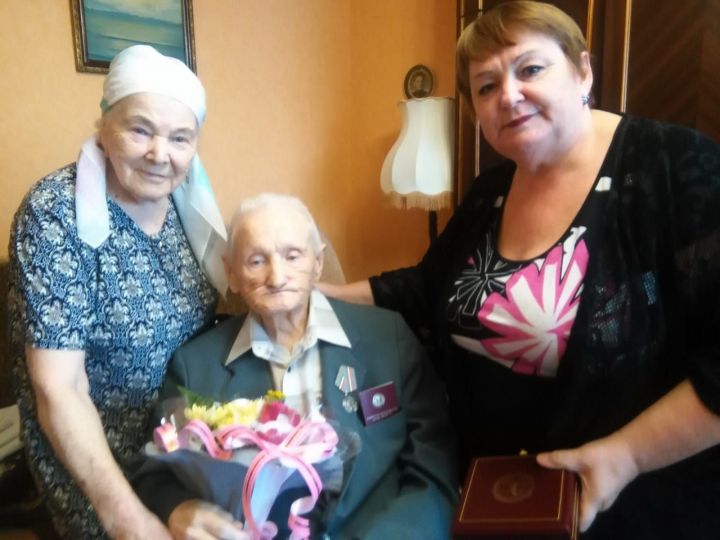 Заместитель главы района Флюра Ногуманова поздравила и вручила медаль "За доблестный труд" жителю города Нурлат Мухтару Гатиновичу Сафину.