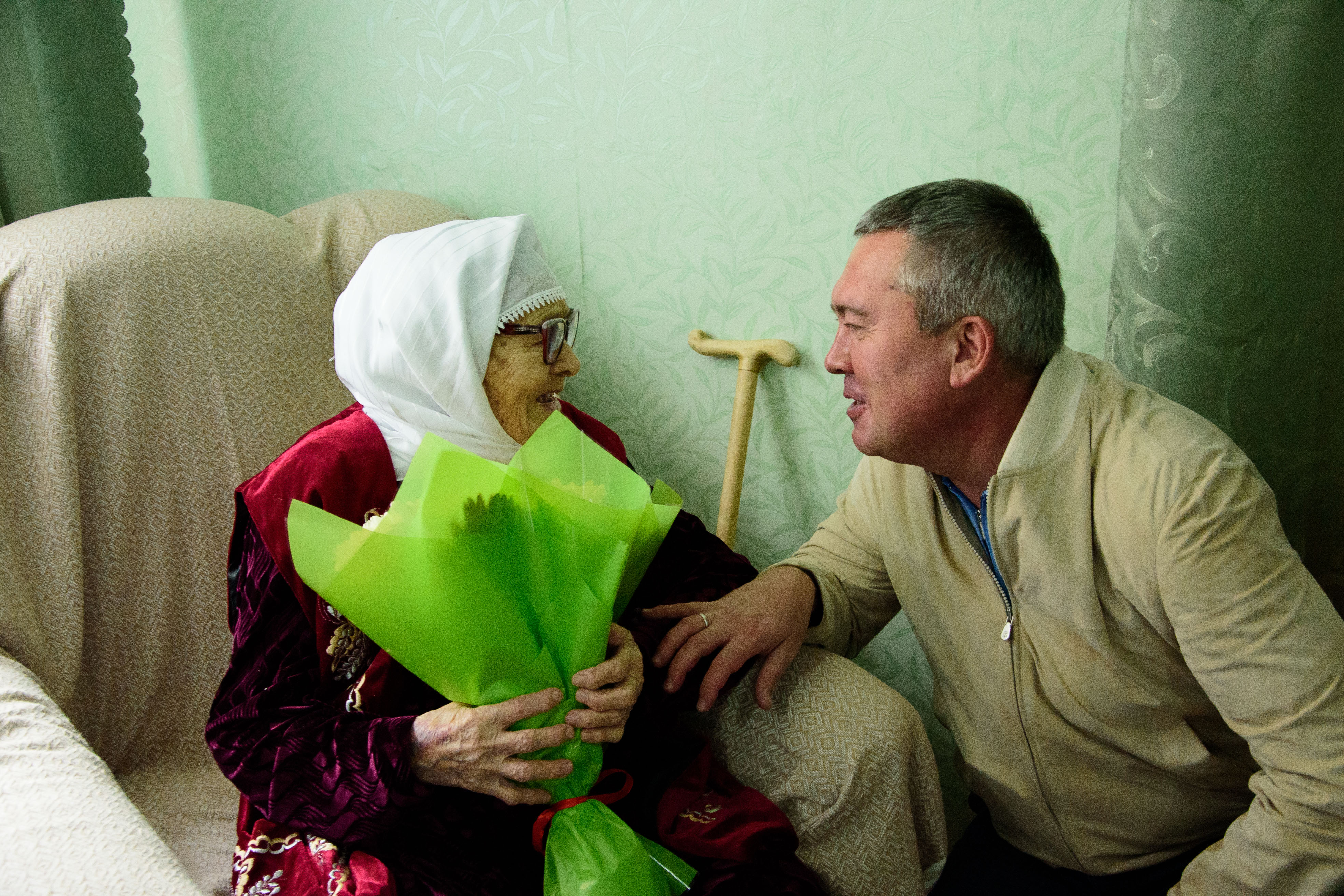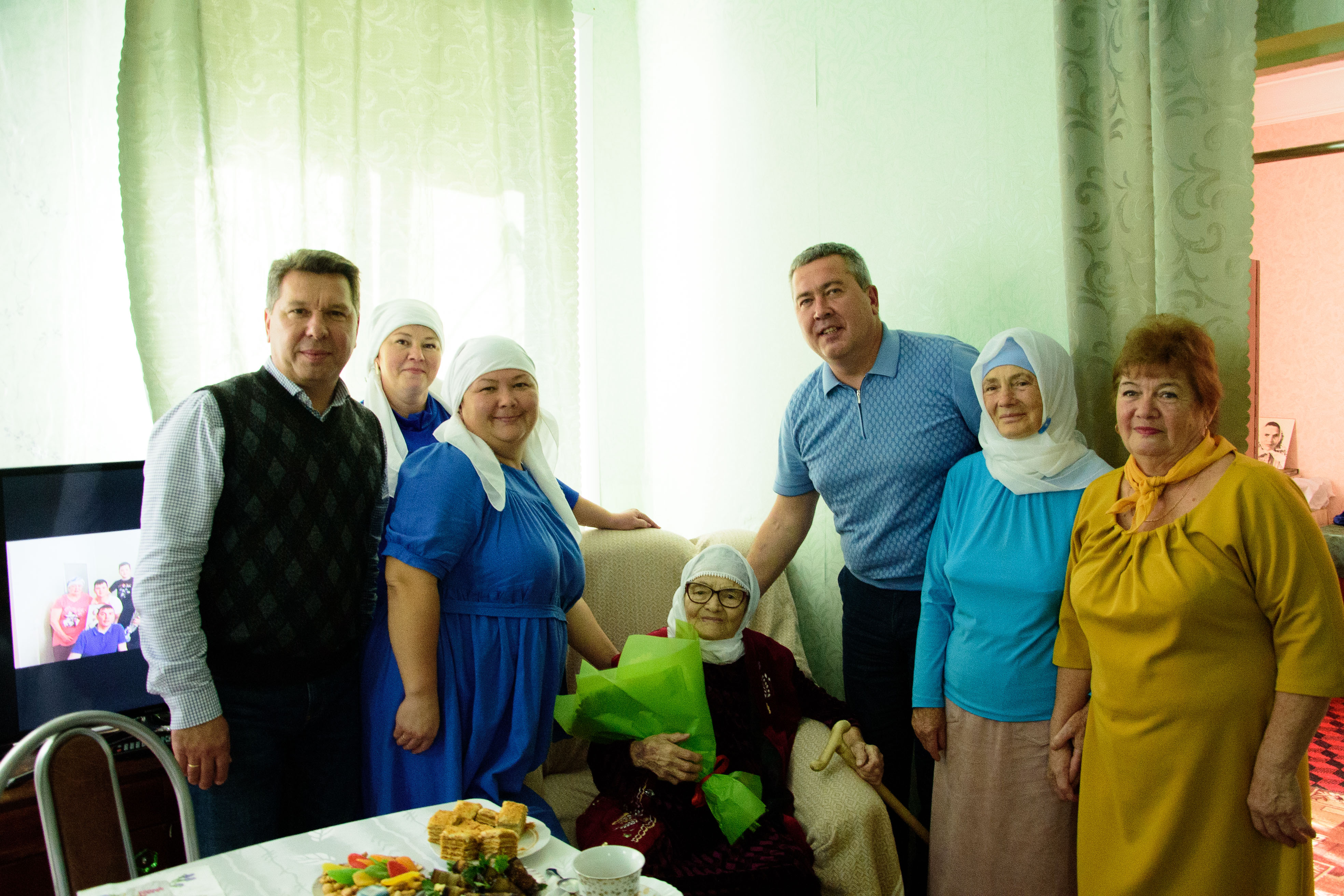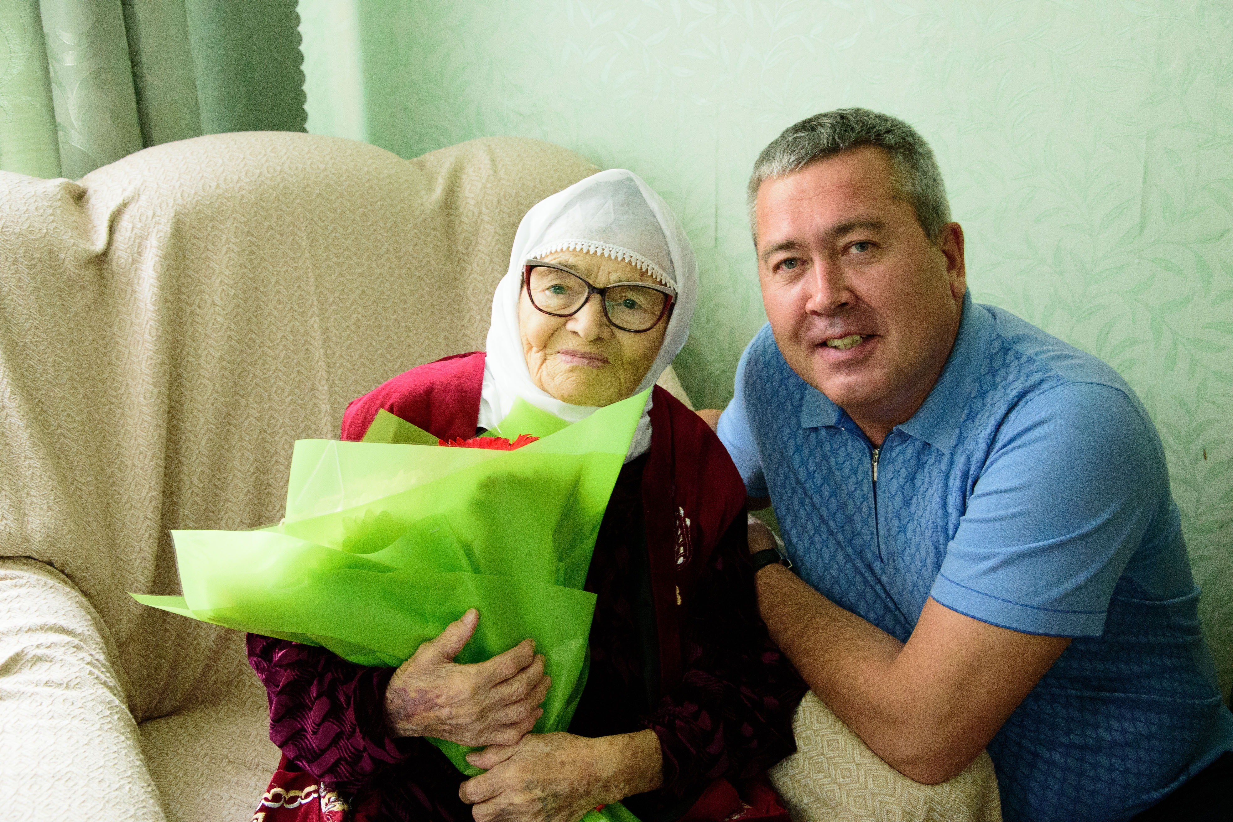 Глава Бугульминского района Линар Закиров поздравил жительницу поселка Карабаш Бугульминского района с юбилеем. Сегодня Салиме Миннехаеровой исполнилось 100 лет.