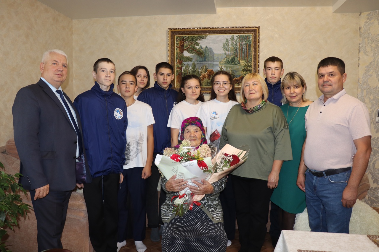 В этот день именинница принимала теплые слова поздравлений от заместителя Главы Дрожжановского муниципального района Алексея Ярухина, от секретаря Большеаксинского сельского поселения Светланы Айкиной и волонтеров — учеников 11 класса Большеаксинской средней школы. Гости поздравили ветерана с юбилеем, вручили юбилярше поздравительную открытку от имени Президента Российской Федерации Владимира Путина, подарки от имени главы Дрожжановского муниципального района Марата Гафарова, цветы, пожелали здоровья, счастья, долгих лет жизни.