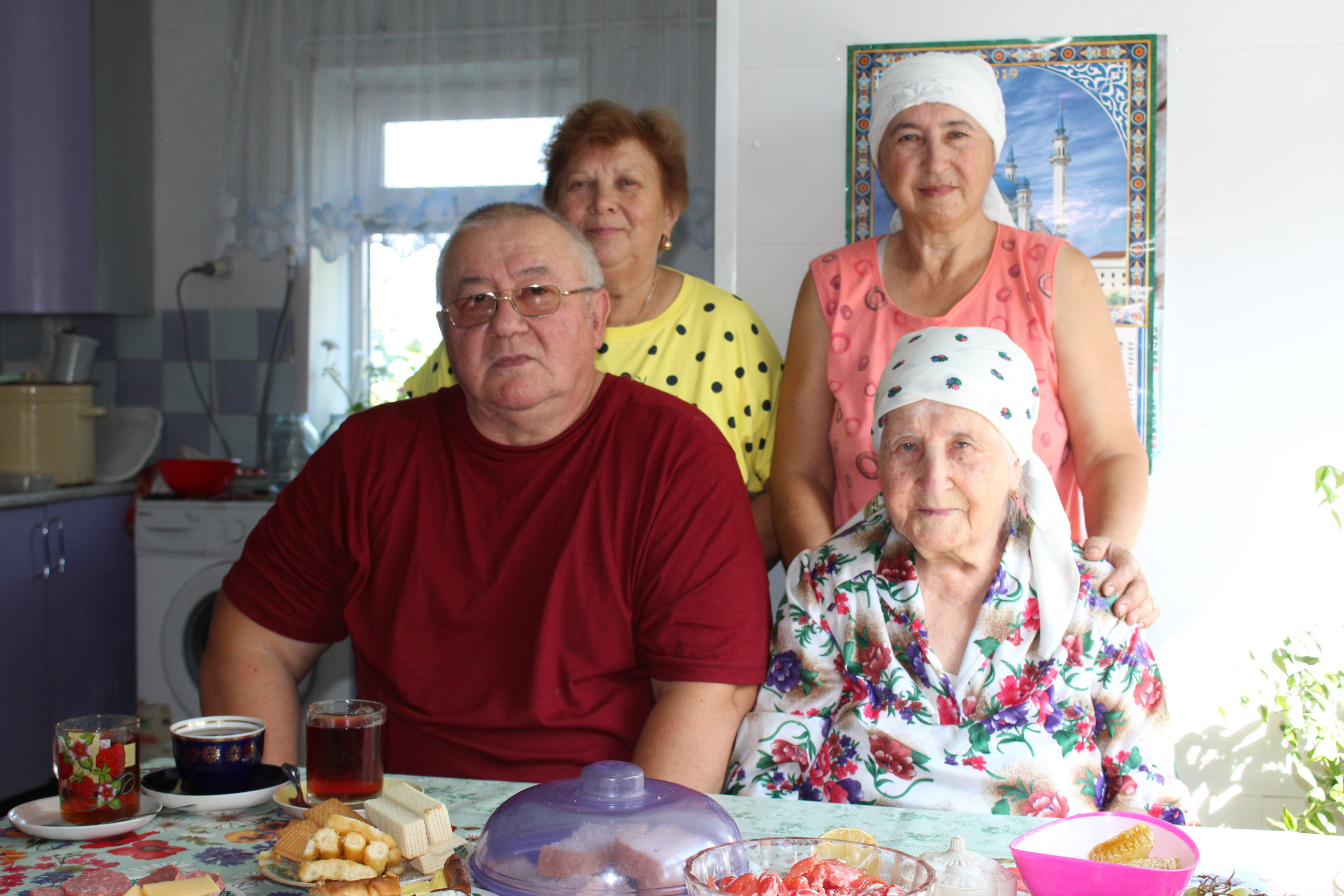 Гостей в этом доме начали принимать еще накануне: с поздравлениями и подарками приехали руководство района и сельского поселения. Минсылу Мубаракшиновна -ветеран органов местного самоуправления. Из 35 лет трудовой деятельности она более 20 лет работала сначала счетоводом в сельском совете, а затем бухгалтером. Когда мы приехали, ее дочь Минзифа, сын Гаяз и его жена Фирдаус вовсю готовились к юбилею и встрече многочисленных гостей. Кроме детей, внуков, правнуков, других родных из деревни и городов, Минзифа Мубаракшиновна отдельно хочет собрать своих бывших коллег по сельскому совету.