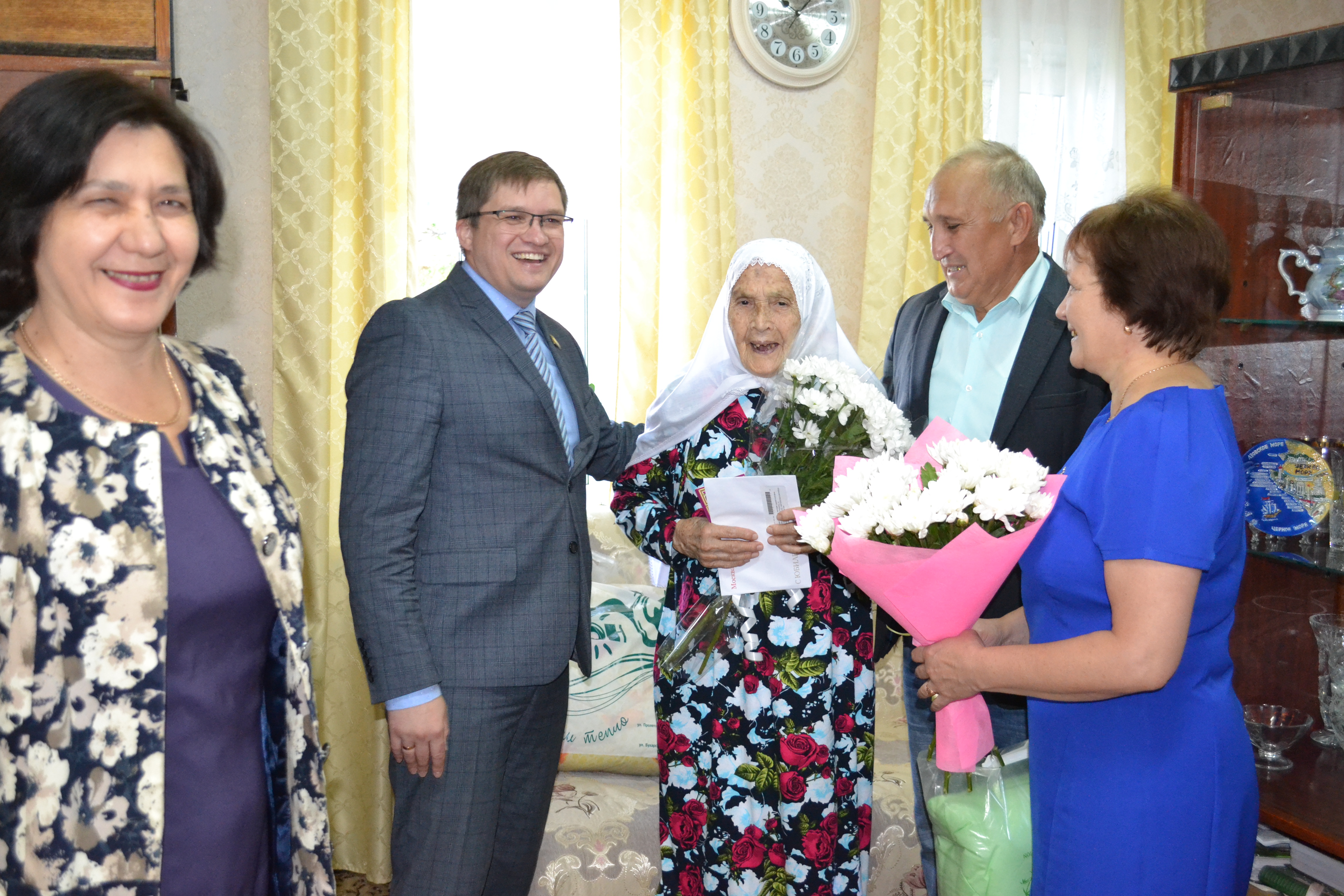 Гости выстроились сегодня в очередь, чтобы поздравить уважаемого юбиляра. Первым поздравил Фагимю Шафигулловну первый заместитель главы Чистопольского муниципального района Константин Иванов, подхватил поздравительную речь и глава Татарско-Толкишского сельского поселения Максум Валиев.