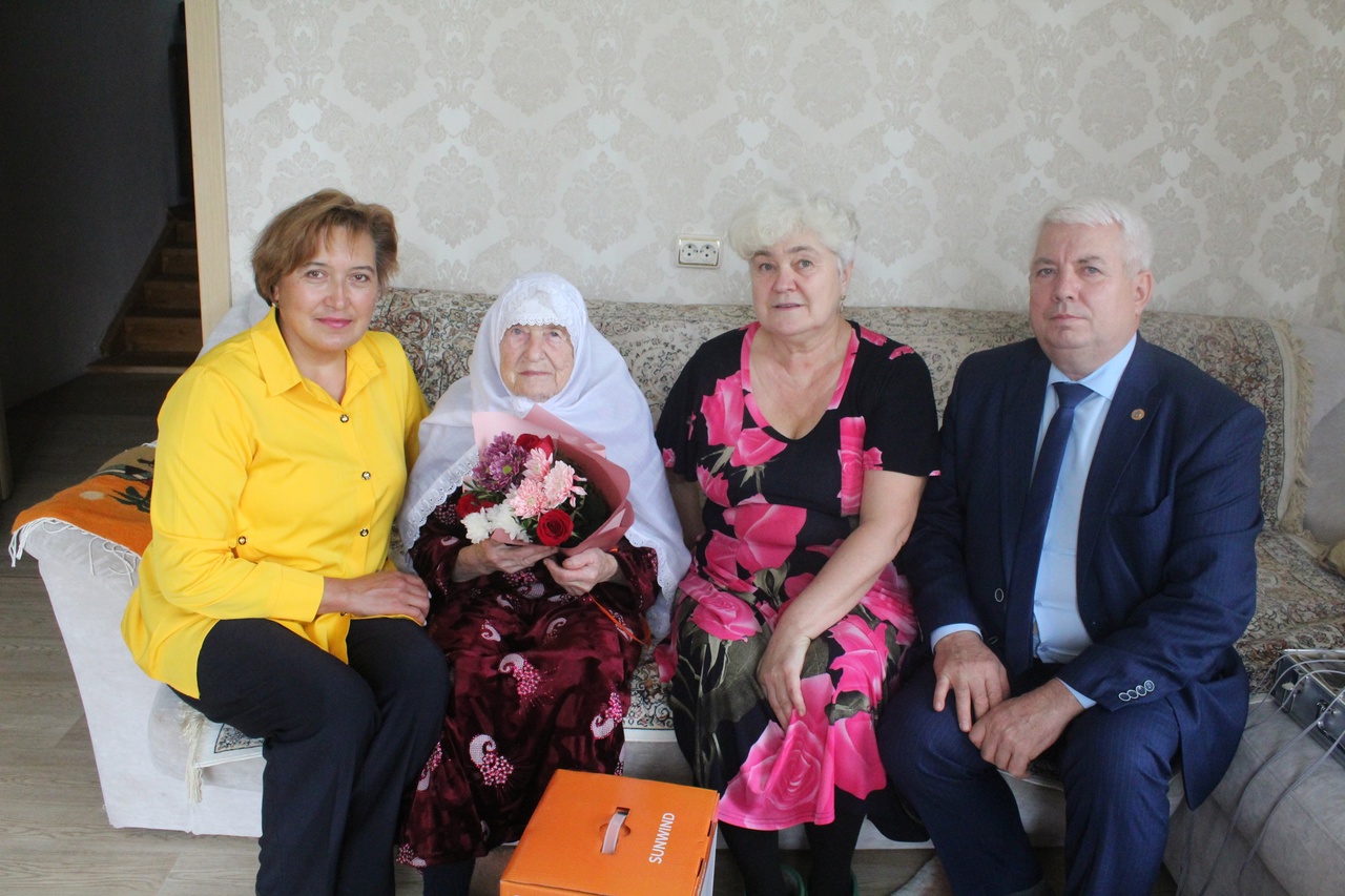 Алексей Ярухин вручил юбилярше персональное поздравление от Президента России Владимира Путина, памятный подарок от имени главы района Марата Гафарова, цветы. Гости пожелали юбилярше долголетия и крепкого здоровья.