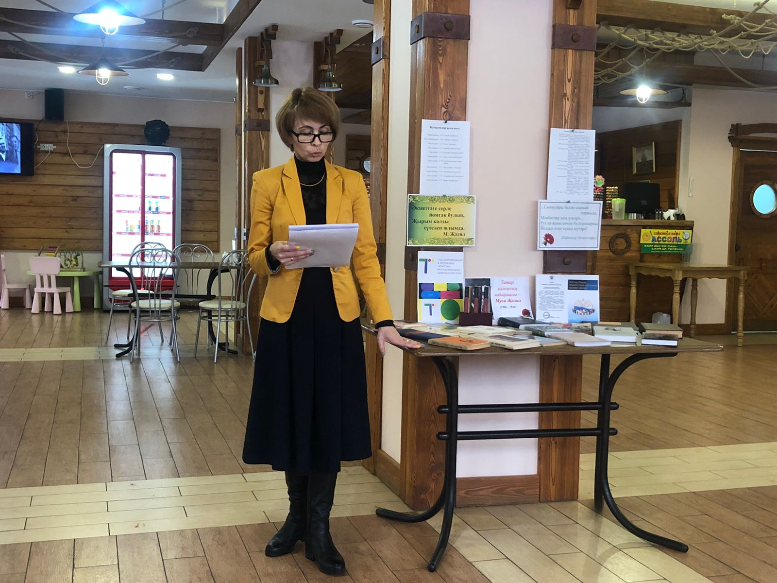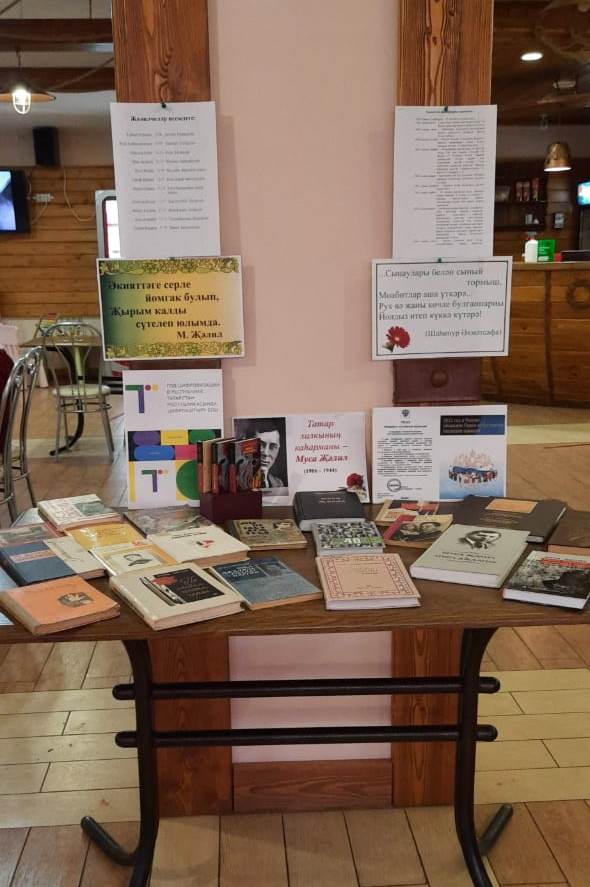 Для гостей была оформлена книжная выставка «Татар халкының каһарманы Муса Җәлил», на которой были представлены сборники стихов, воспоминания современников о поэте, рассказывающая о его жизни творчестве и бессмертном подвиге.