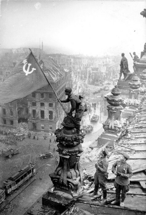 Штурмовое знамя №5 Военного совета 3-й ударной армии было поручено водрузить разведчикам М.А. Егорову и М.В. Кантария. При поддержке группы бойцов, возглавляемых лейтенантом А.Б. Берестом, и роты И.Я. Сьянова Егоров и Кантария достигли крыши здания. Ровно в 21 час 50 минут 30 апреля 1945 года над Рейхстагом было водружено Знамя Победы. За героизм и умелое руководство боем В.И. Давыдов, С.А. Неустроев, К.Я. Самсонов, М.А. Егоров и М.В. Кантария получили звёзды Героев Советского Союза.