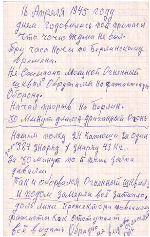В учебнике по истории Отечества мы читаем: «16 апреля 1945 года в 3 часа по московскому времени началась авиа – и арт - подготовка. Затем неожиданно для немцев включены 143 зенитных прожектора, слепившие немецких солдат, когда наступала советская пехота. Зееловские высоты не устояли и ценой больших потерь были преодолены нашими войсками».