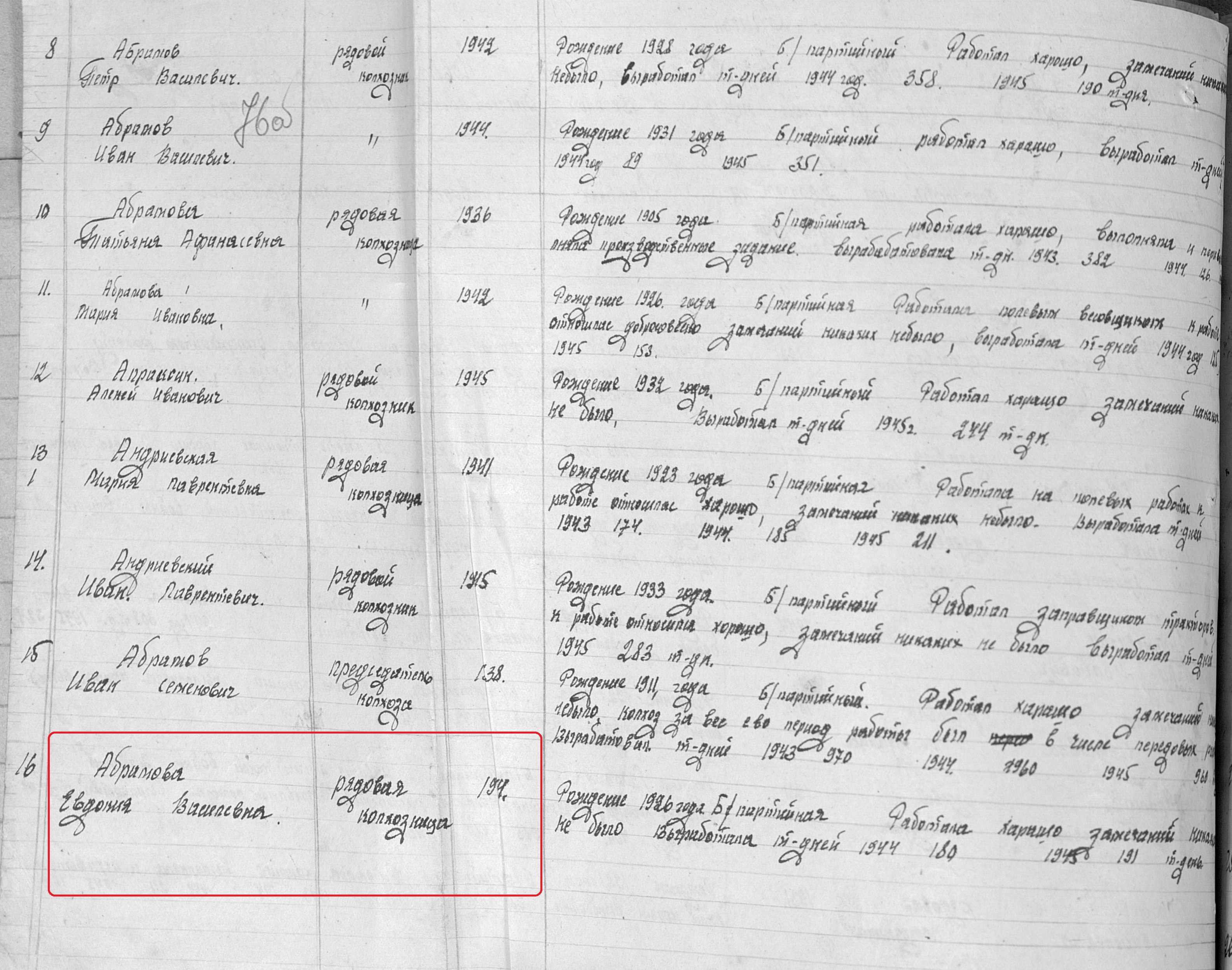 АБРАМОВА ЕВДОКИЯ ВАСИЛЬЕВНА
