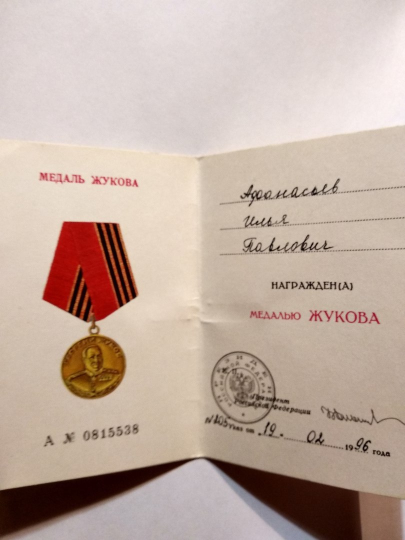 АФАНАСЬЕВ-АПУШЕВ ИЛЬЯ ПАВЛОВИЧ (26.08.1925-22.07.2014 г.г.) родился в деревне Кулущи Мамадышского района в многодетной семье. Рано начал работать, помогал родителям в домашнем хозяйстве, был крепким и трудолюбивым парнем. Когда ему исполнилось 18 лет в 1943 году, его призвали на службу. В Польше он проходил учебу. "Я был солдатом Первого Украинского фронта, - говорил он. - Видел много смертей однополчан, голодали, портянки стелили вместо простыни и своим теплом сушили их, когда мы спали». Он дошел до Берлина в звании ефрейтора, у него есть медали "За взятие Берлина", "За победу над Германией", "За победу над Японией." Участвовал в сове́тско-япо́нской войне. В 1950 году, отслужив 7 лет, дедушка приехал в родное село. В 1996 году ему вручили медаль «Жукова". Этой медалью он очень гордился. "Его вручали далеко не всем," - говорил он. Мы жили вместе с дедушкой. Он учил нас всему, что умел. Вспоминая войну, он говорил, «не дай бог пережить вам то, что я пережил.»