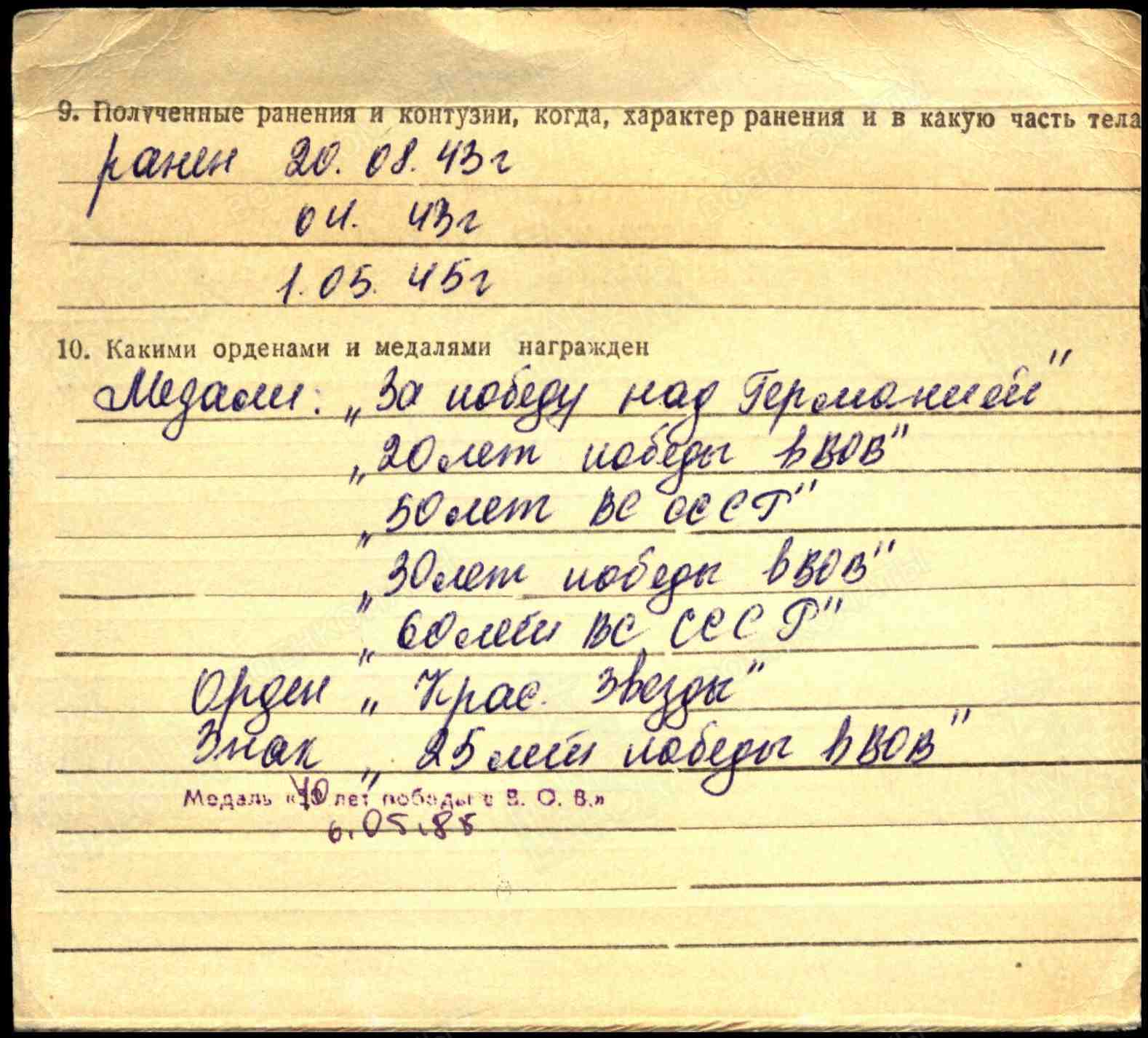 Участвовал в боях на Курской дуге, форсировании Днепра, Одера. Тяжело ранен, контужен.