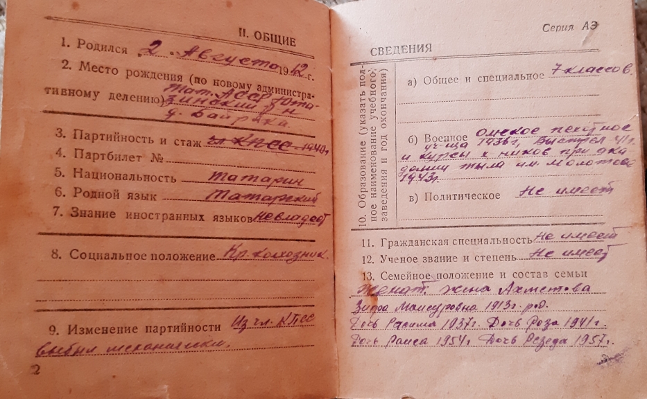 Ахметов Габделкутдус Муксинович,родился 2 августа 1912 года с с.Байряка ,Ютазинский район , Татарской АССР. 1941 году командир стр.роты Западный фронт, 1943 году помощник командира МТО 1 Украинский фронт. Майор. Умер 1975 году