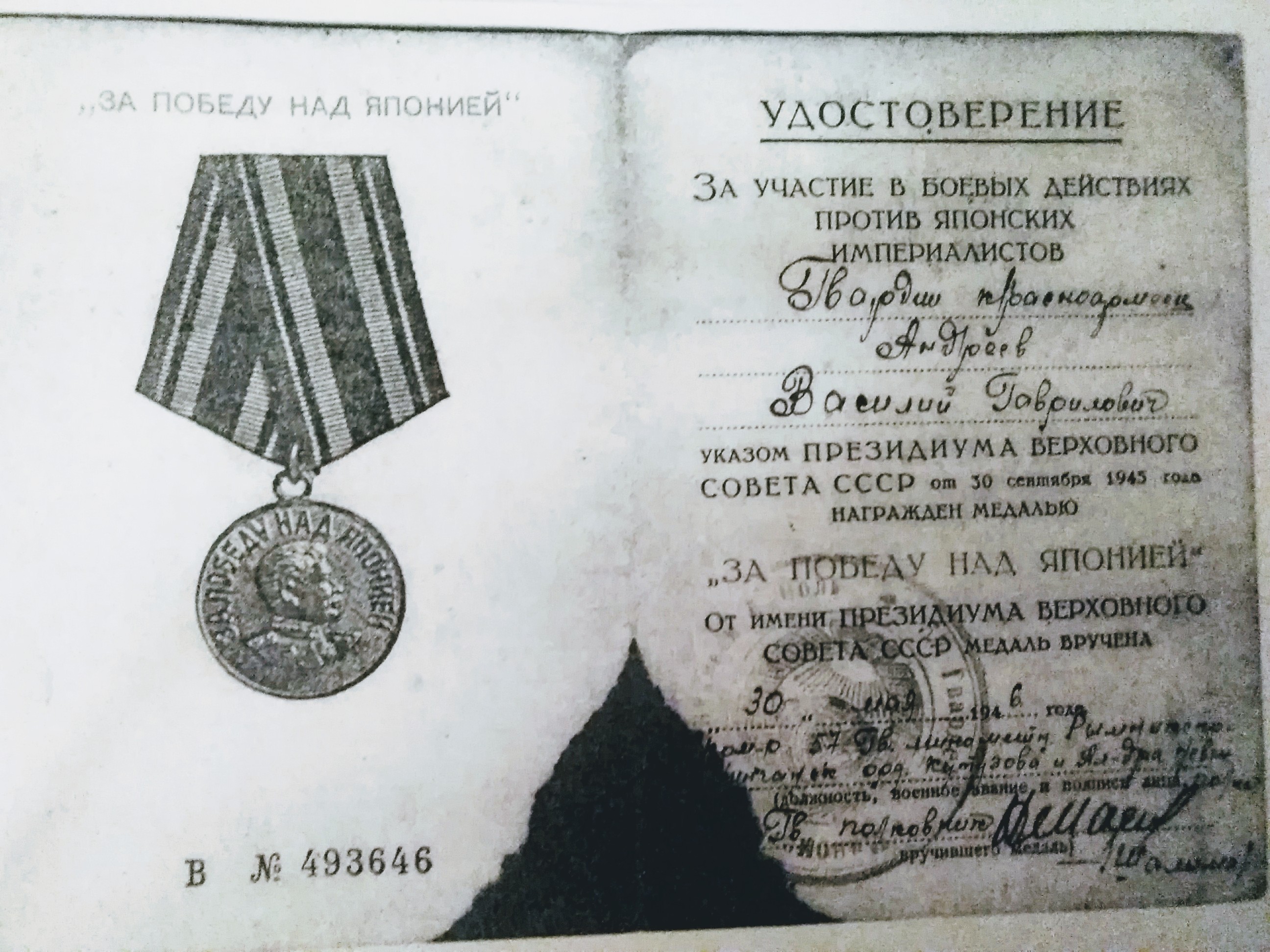 Андреев Василий Гаврилови- гвардии рядовой,связист, уроженец с.Мамыково Тельмановского района Татарской АССР, 1920 года рождения из крестьян, колхозник. Призван в 1940 году на службу в ряды Вооруженных сил СССР,гвардии красноармеец,В октябре 1942 года направлен на сборный пункт станции Бугульма из Нурлата-Октябрьского. райвоенкомата Тат.АССР.Прошел боевой путь во время Великой Отечественной войны с 1942 года по 1946 год как гвардии красноармеец в 57гвардейском Рымникско-Уингамском Орденов Кутузова и Александра Невсеого минометном полку связистом.За проявленное мужество и героизм награжден медалями: "За оборону Сталинграда",. "За освобождении Праги". ""За взятие Будапешта",. "За боевые заслуги", "За победу над Японией",. "За победу над Германией в ВОВ 1941-1945 г.г."Славный боевой путь рядового войны,но героя Победы!!!! После демобилизации работал в сфере потребительской кооперации на руководящих должностях в Нурлат-Октябрьской потребкооперации Райпотребсоюза Татарской АССР.