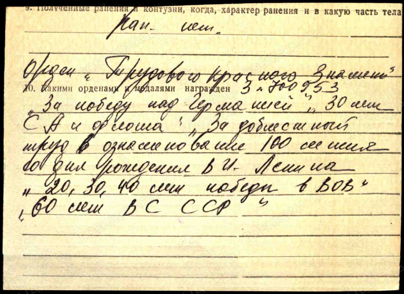 Родился 21.12.1925г. в с. Наумовка Северного района Оренбургской области. До войны работал кузнецом колхоза «Красный воин».
