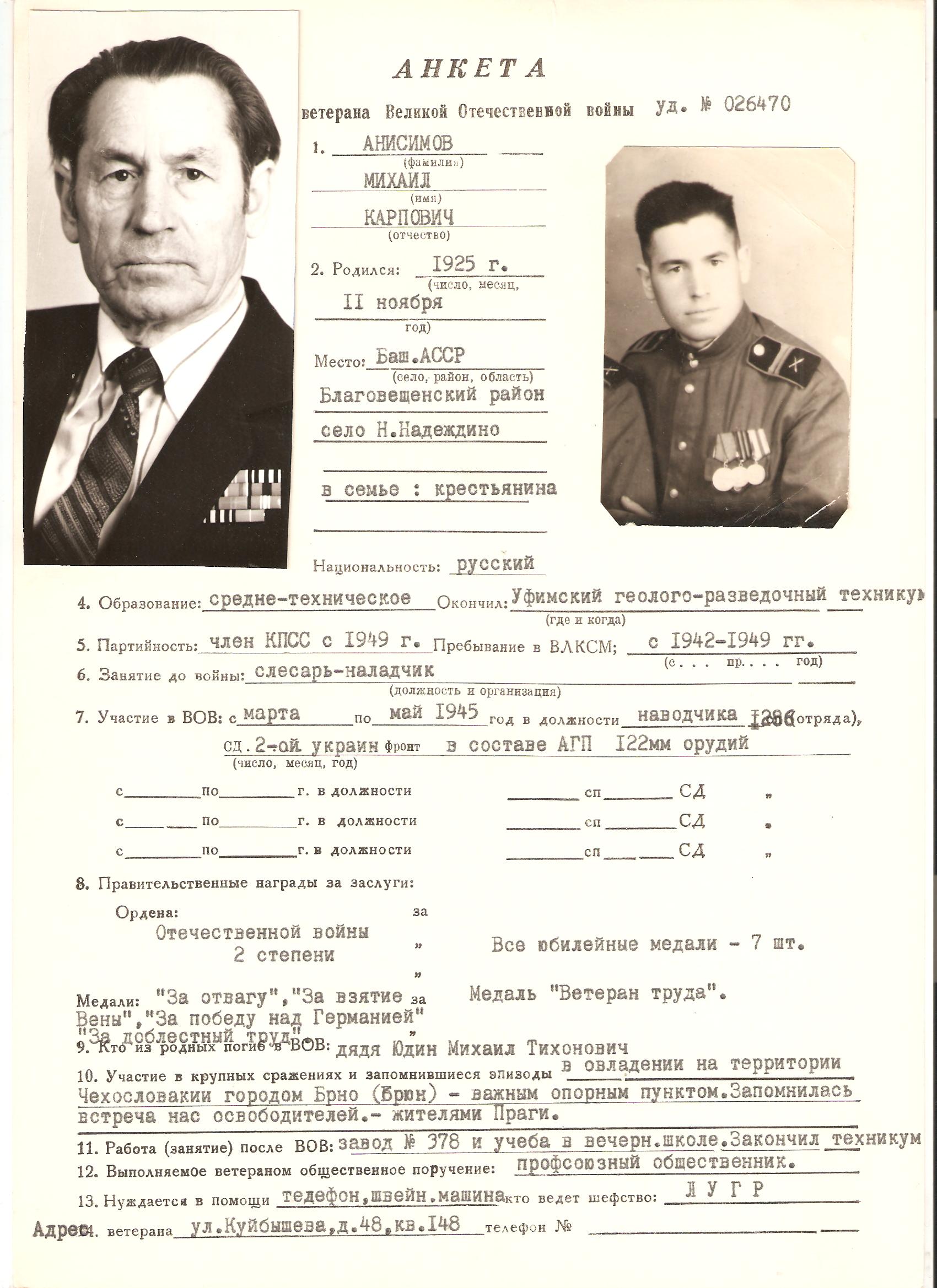 АНИСИМОВ МИХАИЛ КАРПОВИЧ