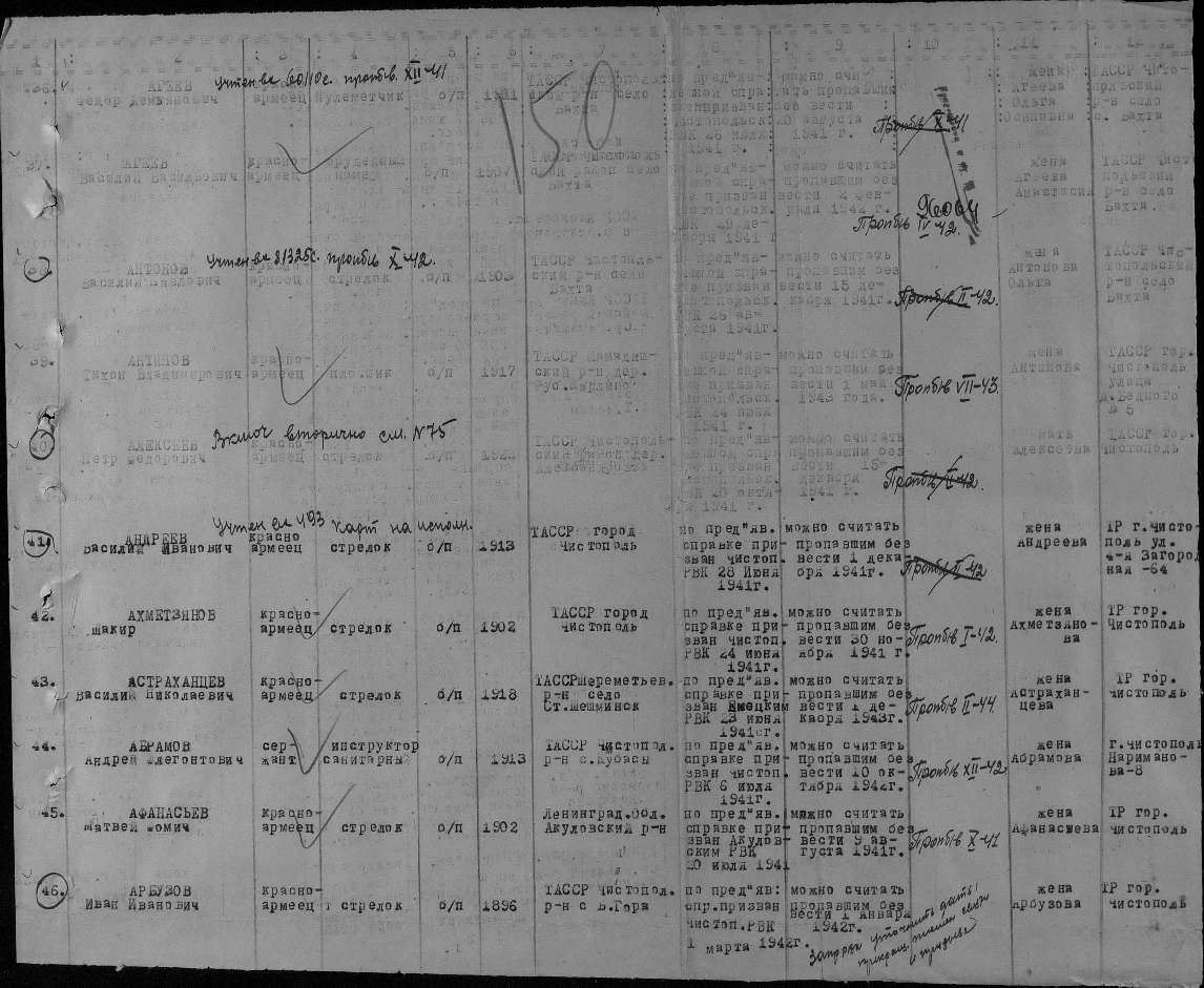 Родился 1 февраля 1903 г. в с. Бахта Чистопольского уезда Казанской губернии. В августе 1941 г. призван на фронт Чистопольским РВК. Последнее место службы: 383 сп. Пленен под Воронежем 05.06.1942 г. Содержался в шталаге VI C. Лагерный номер 51632. Сержант Антонов В.П. погиб в плену 18.12.1943 г. Место захоронения: Алексисдорф.