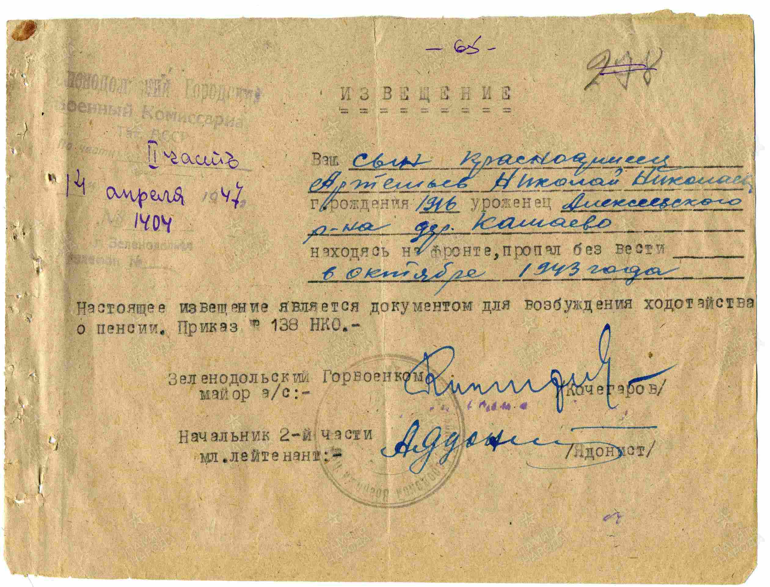 АРТЕМЬЕВ Николай Николаевич, 1916, д. Кошаново. Мобилизован Зеленодольским РВК в июне 1940. Красноармеец. Последнее письмо пришло в авг. 1943. Пропал без вести.