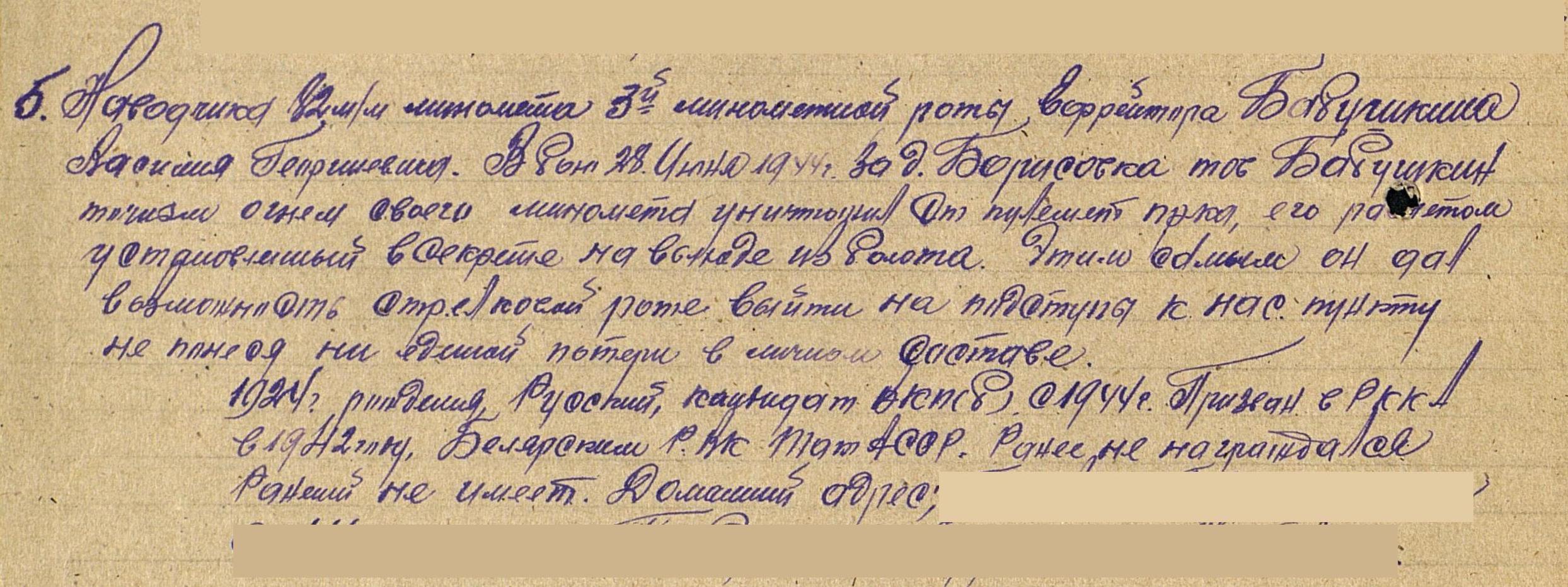 БАБУШКИН Василий Георгиевич (Егорович), 1924, с. Шама. Работал в колхозе "Трудовик" в 1941-1942 гг. до призыва на фронт рядовым колхозником. В 1946 г. награждён медалью "За доблестный труд в Великой Отечественной войне 1941-1945 гг". Мобилизован в 1942 г. Билярским РВК. На фронте с 1943 г. Наводчик 82мм миномёта 23 СП 51 СД 1-й Прибалт. фронт, ефрейтор. Награждён медалью "За отвагу". Тяжело ранен. Инвалид войны. После демобилизации работал в колхозе. Умер в 2004 г. Похоронен в с. Шама.