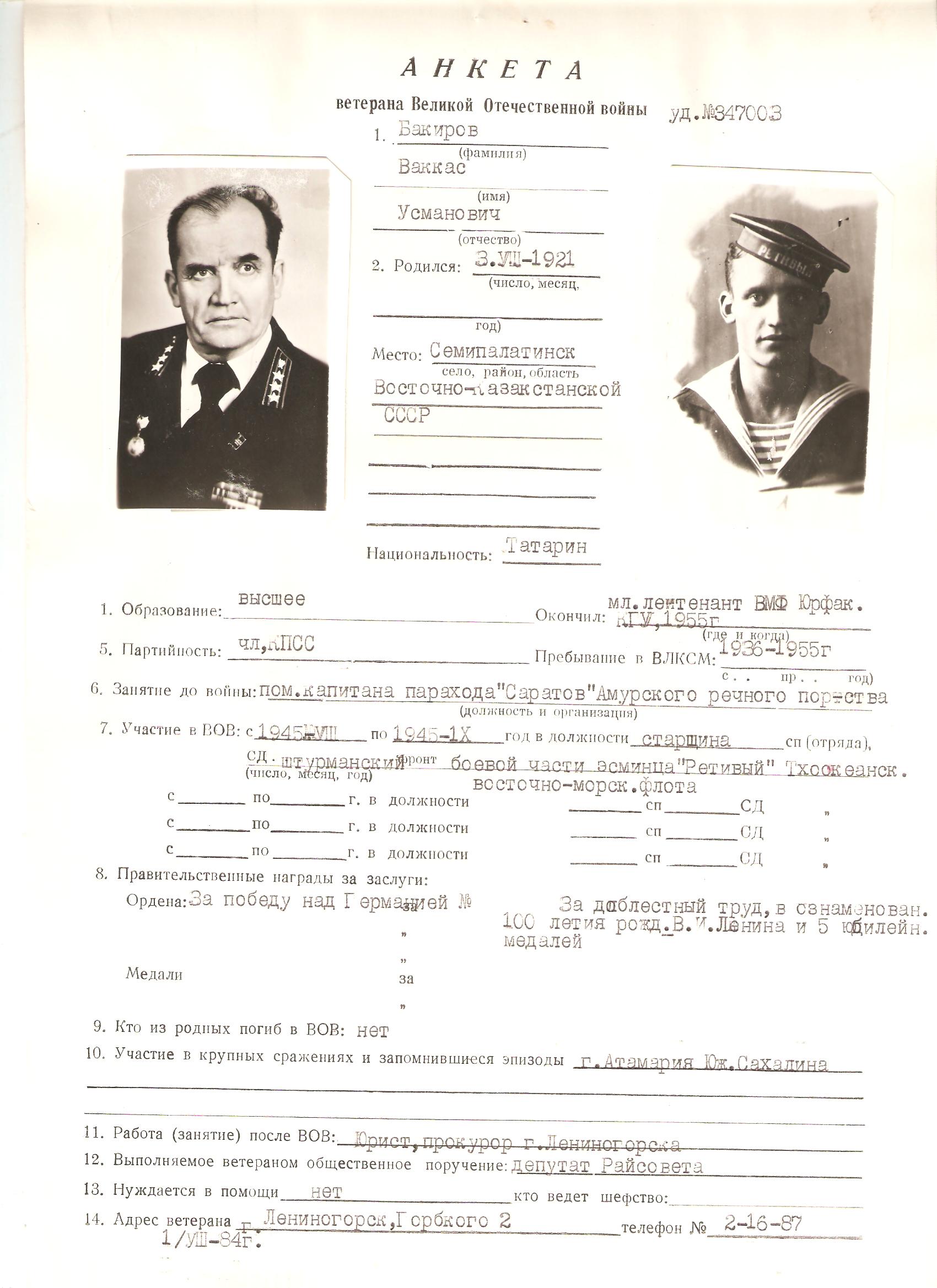БАКИРОВ ВАККАС УСМАНОВИЧ