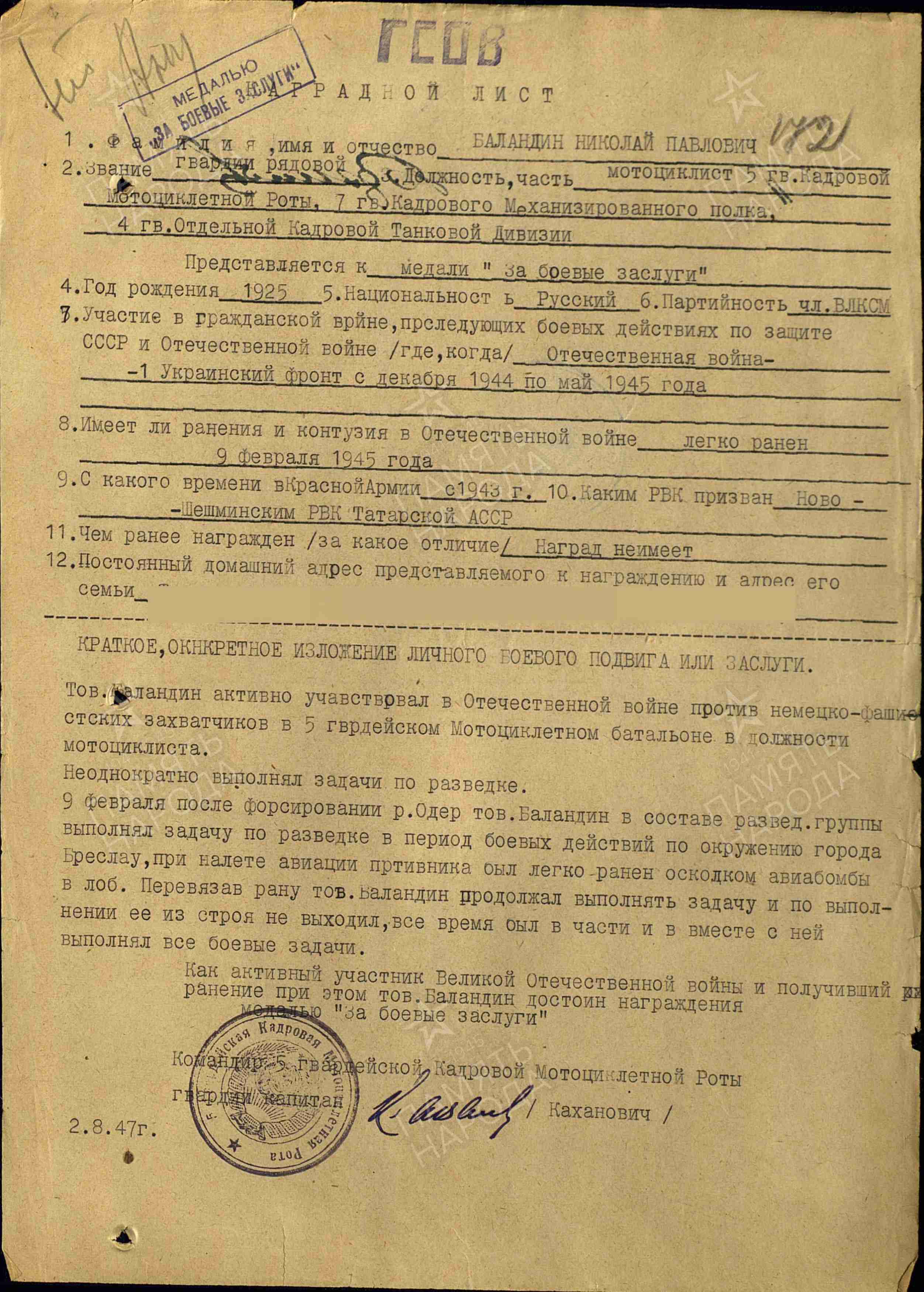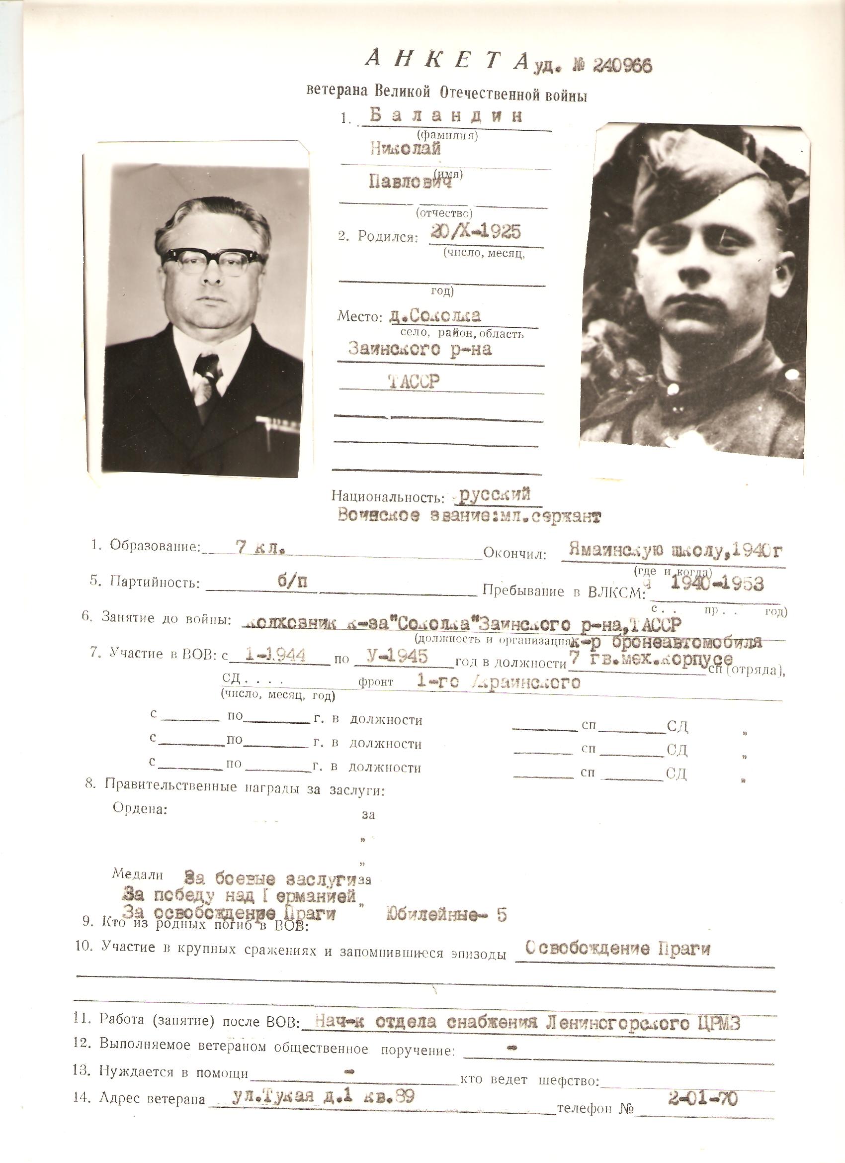 БАЛАНДИН НИКОЛАЙ ПАВЛОВИЧ