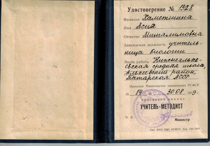 Работе в Нижнеалькеевской школе Асия Мингалимовна посвятила 43 года. В её трудовой книжке всего 3 записи: