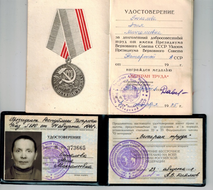 Билалова А.М. имеет звание «учитель-методист», «Ветерана труда», удостоена медали «Медаль материнства II cтепени».
