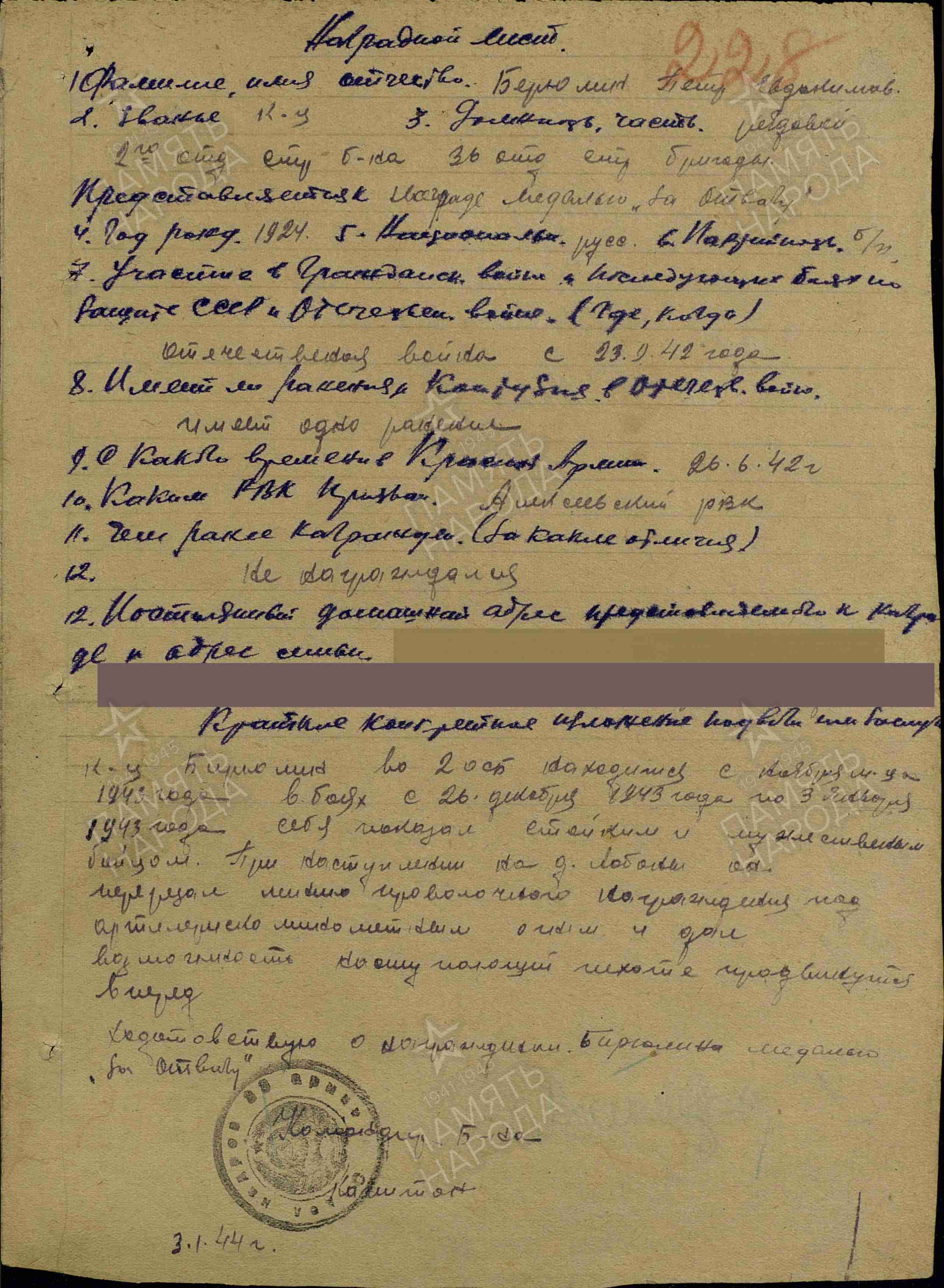 БИРЮЛИН Пётр Евдокимович, 1923, с. Левашёво. Мобилизован 27 июня 1942 Алексеевским РВК. Красноармеец, 1109 СП 330 СД 10 А Западного фронта. В боях с 23 сент. 1942. Ранен в 1943. Находился на лечении в ЭГ 2911, г. Павлово-Посад, Московская обл. После госпиталя воевал в составе 36 отд. СБр 33 А Западного фронта. Награждён медалью «За отвагу». По данным ГА РТ – попал в плен, освобождён.