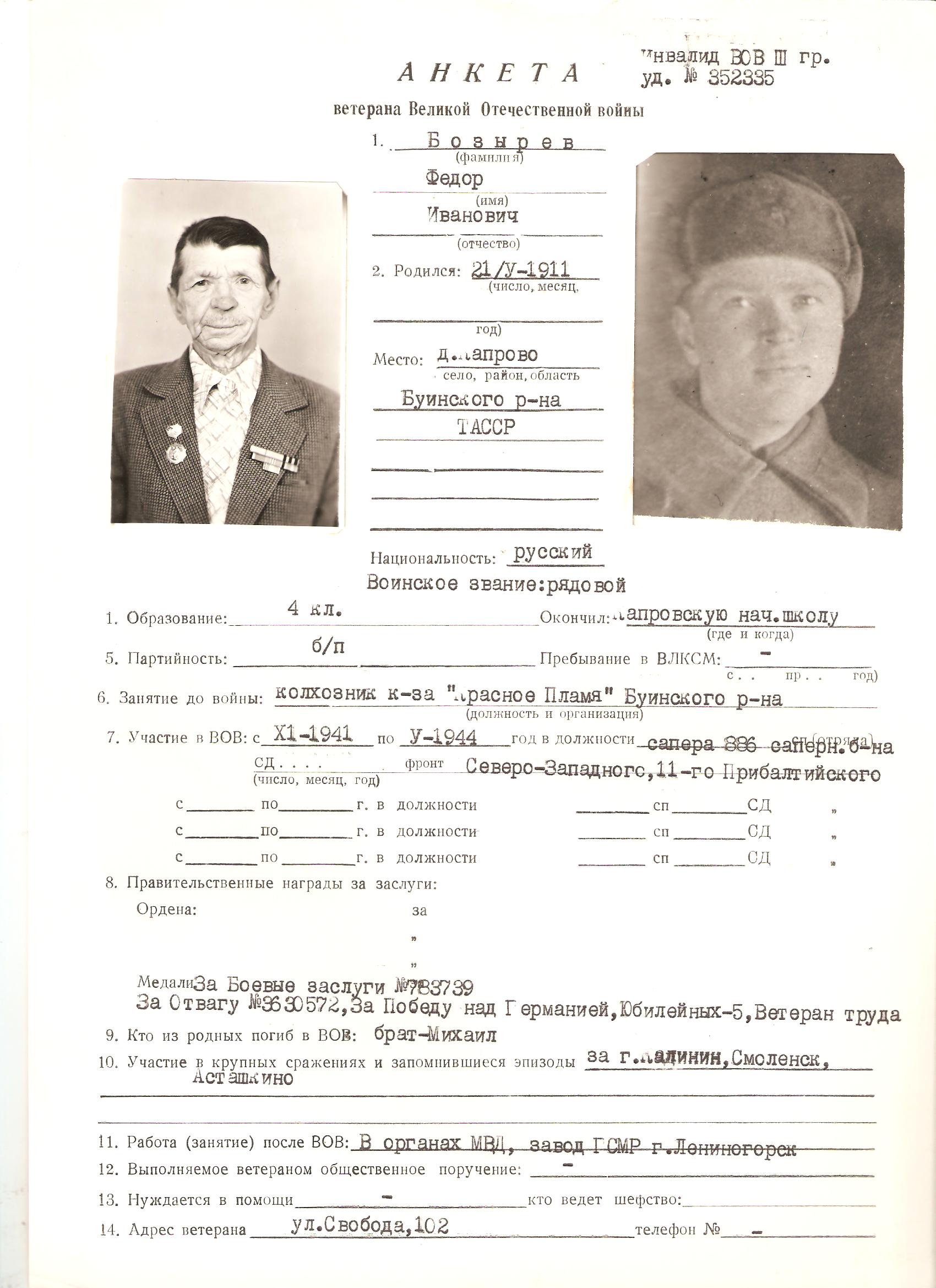 БОЗЫРЕВ ФЕДОР ИВАНОВИЧ