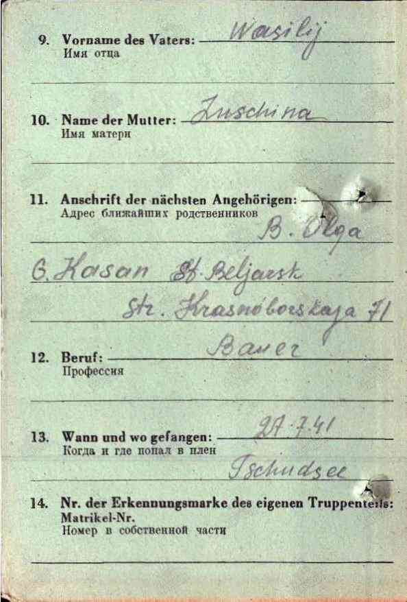 БРУСОВ Михаил Васильевич, 1909, с. Билярск. Мобилизован Билярским РВК 28 июня 1941. Мл. нач. состав/ красноармеец, 48 СД 11 СК 8 А Северо-Западного фронта. Попал в плен 27 июля 1941 в р-не Чудского озера. Содержался в лагере военнопленных X B, Зандбостель, Нижняя Саксония, Германия. По данным ГА РТ – освобождён.