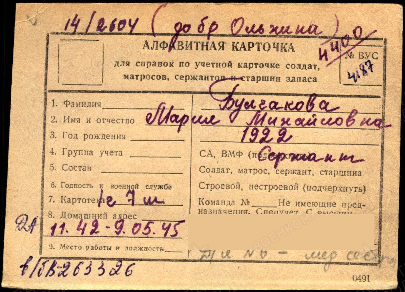 БУЛГАКОВА (ОЛЬХИНА) МАРИЯ МИХАЙЛОВНА