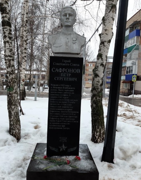 Сафронов Пётр Сергеевич (1.01.1925, д.Моркваши Елабужского района ТАССР – 11.1995 г., г.Сыктывкар, Республика Коми), участник Великой Отечественной войны, Герой Советского Союза, стрелок 234-го гвардейского стрелкового полка 76-й гвардейской стрелковой дивизии 61-й армии Центрального фронта, гвардии ефрейтор.