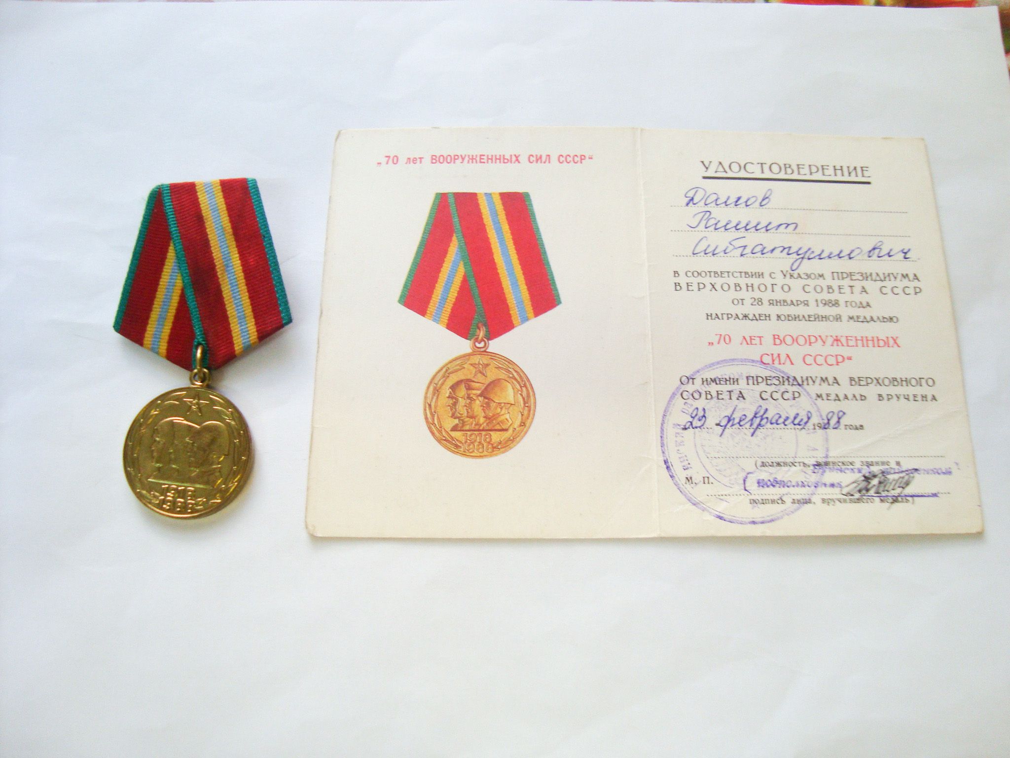 удостоверение к юбилейной медали «70 лет Вооруженных сил СССР»