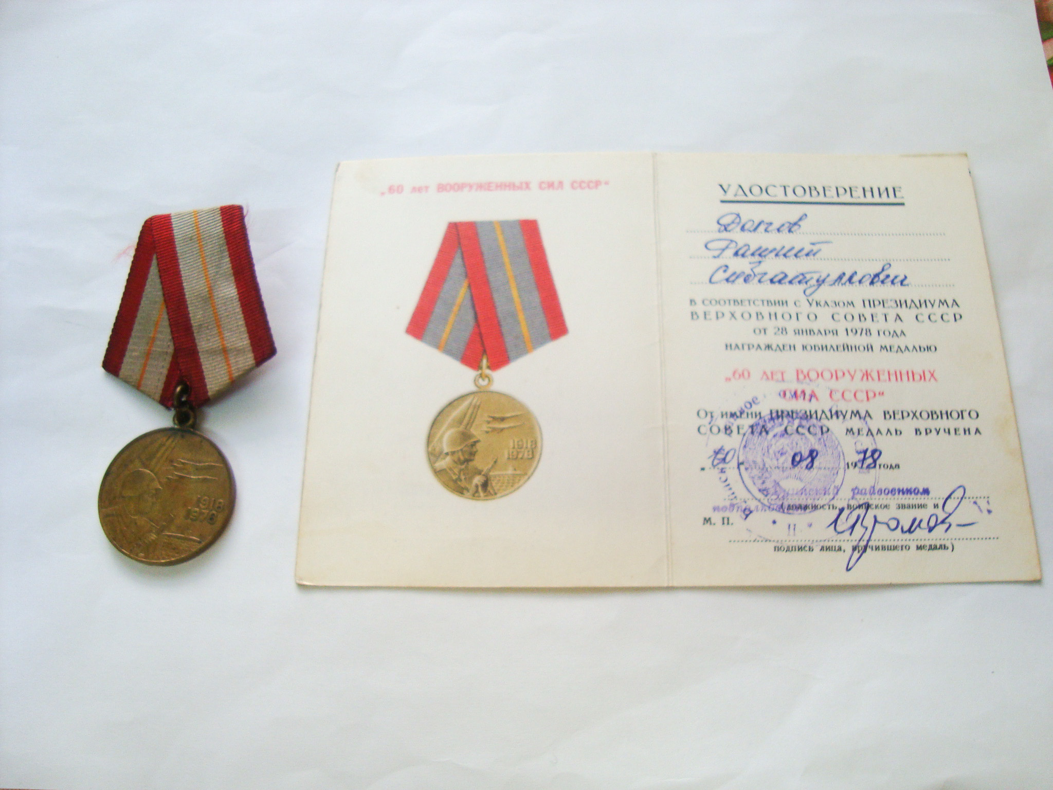 «60 лет Вооруженных сил СССР» от имени Президиума Верховного Совета СССР,