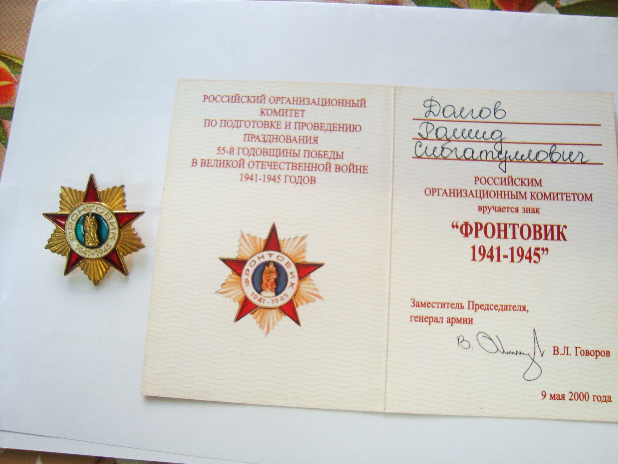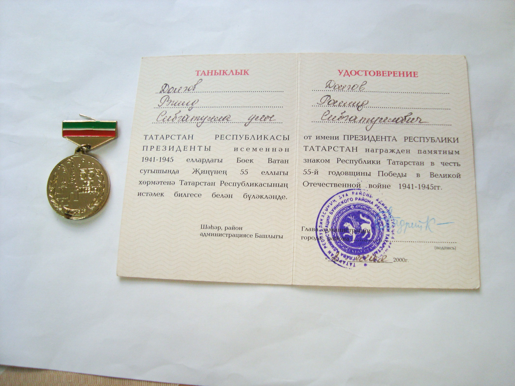 награжден памятным знаком Республики Татарстан в честь 55-й годовщины Победы в Великой Отечественной войне 1941-1945гг.»