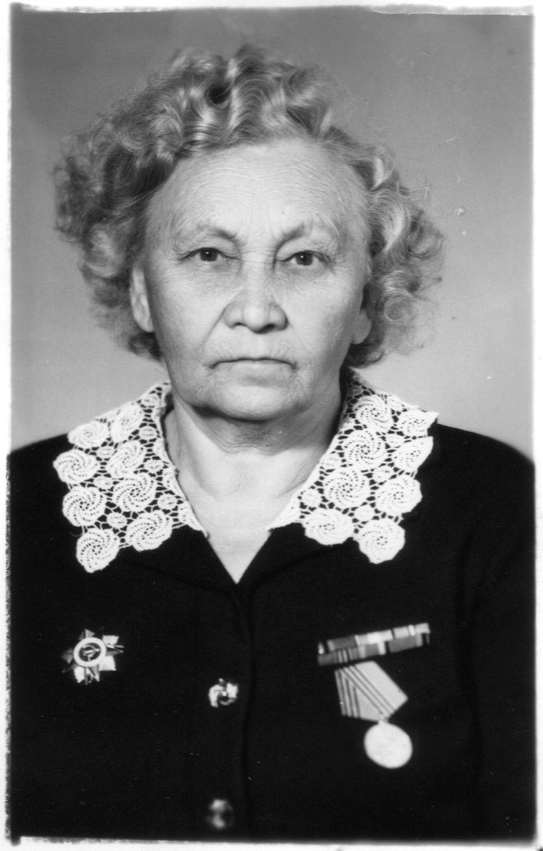 Родилась в городе Царицын (Волгоград) 14 октября 1923 года. Ушла из жизни 8 октября 2005 года, ей было 82 года. Война застала в городе Елабуга, Республика Татарстан, где заканчивала педагогическое училище. Мобилизована в ряды Советской Армии 14 июня 1942 года. В числе 10-и человек из города. Определили в 510-й ОЗАД (отдельный зенитно-артиллерийский дивизион) войск ПВО, который шёл за фронтом и направлялся на охрану стратегически важных объектов: городов, мостов, железнодорожных станций. В составе этого дивизиона с боями прошла по землям Украины, Польши и части Германии. Дивизион участвовал в сражениях 1-го Украинского и 1-го Белорусского фронтов. Участвовала в боях под городом Кóростень (Украина) - 8 апреля 1944, у города Сáрны (Украина) - 19 мая 1944, и у города Кюстрин (железнодорожная станция) в Германии. Домой прибыла только в августе месяце 1945 года, поступила в пединститут, закончила его. Проработала в двух общеобразовательных школах 32 года учителем истории, русского языка и завучем в Нижнекамском районе и в городе Нижнекамск. С 1945-го года не теряла связь со своими фронтовыми подругами Ищенко Ульяной и Дерюгиной Екатериной».